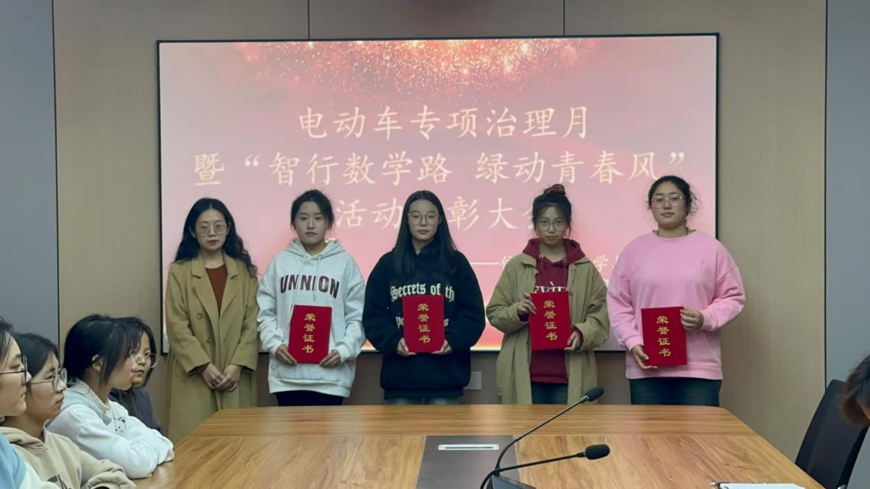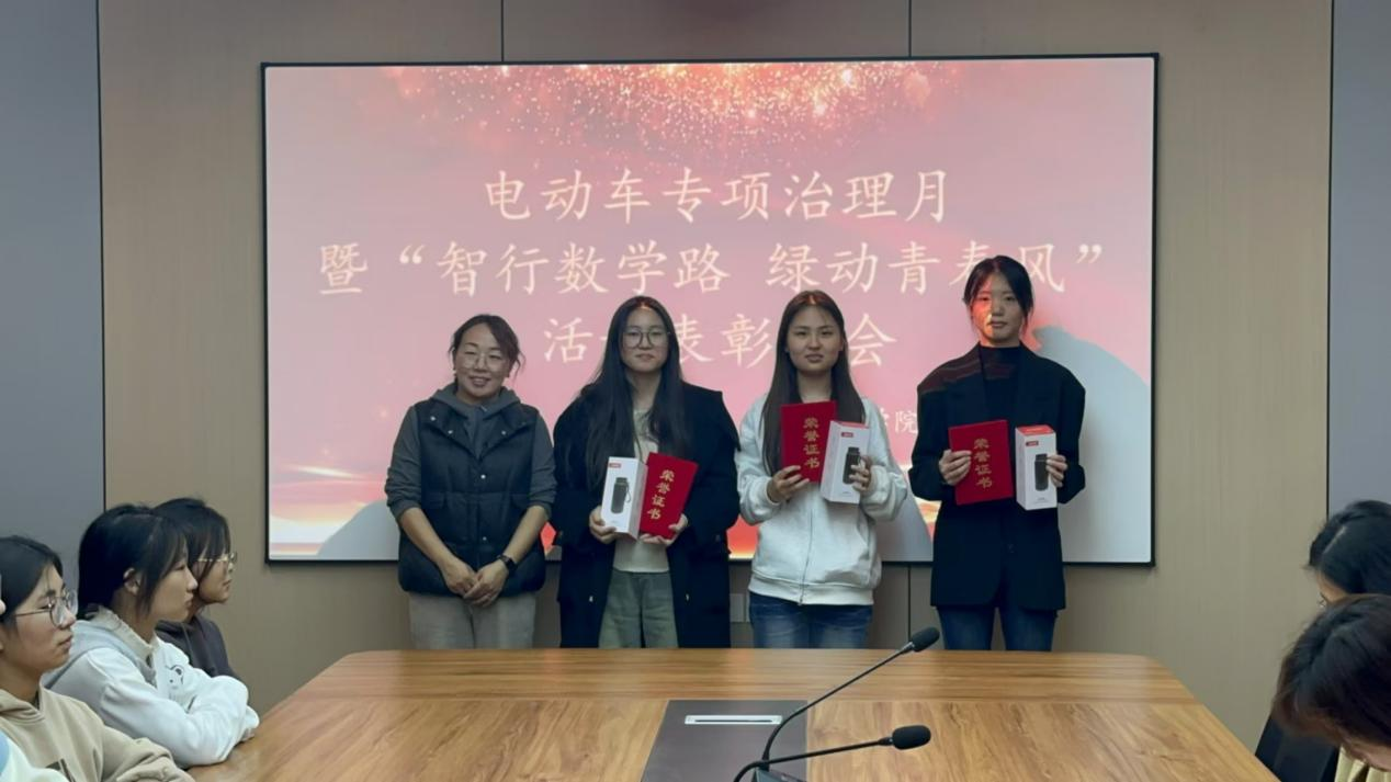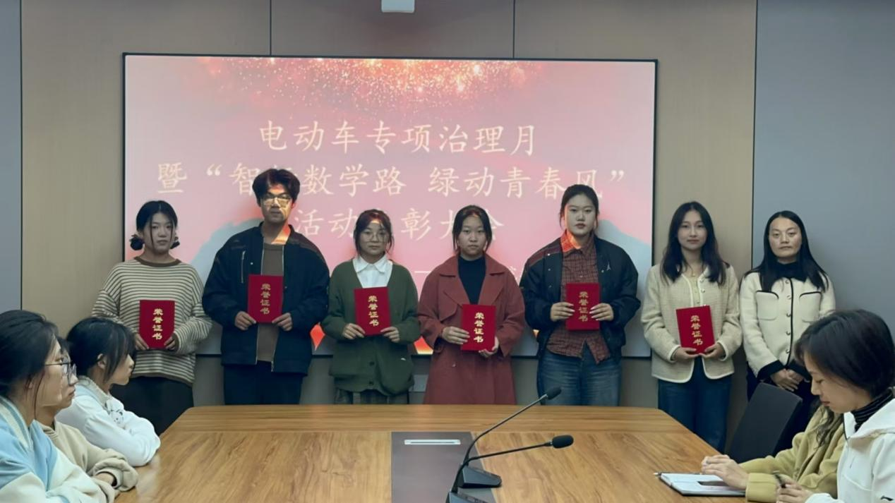 为了规范校园电动车使用,营造安全有序的校园环境,表彰在电动车专项治理月和绿色出行方面做出突出贡献的个人和团队,11月8日,数学与统计学院在社科楼418会议室召开电动车专项治理月暨“智行数学路 绿动青春风”表彰大会,数学与统计学院党总支书记高昌慧、学工干事田媛、全体辅导员及学生代表参会,会议由范学琴主持。