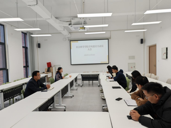 为进一步弘扬优良学风,营造浓厚的学习氛围,提高人才培养质量,11月14日上午,社会科学学院在南湖校区教二楼509会议室召开学风建设月动员会,党总支副书记胡志国、学工干事陈苗苗和全体辅导员参加了会议。