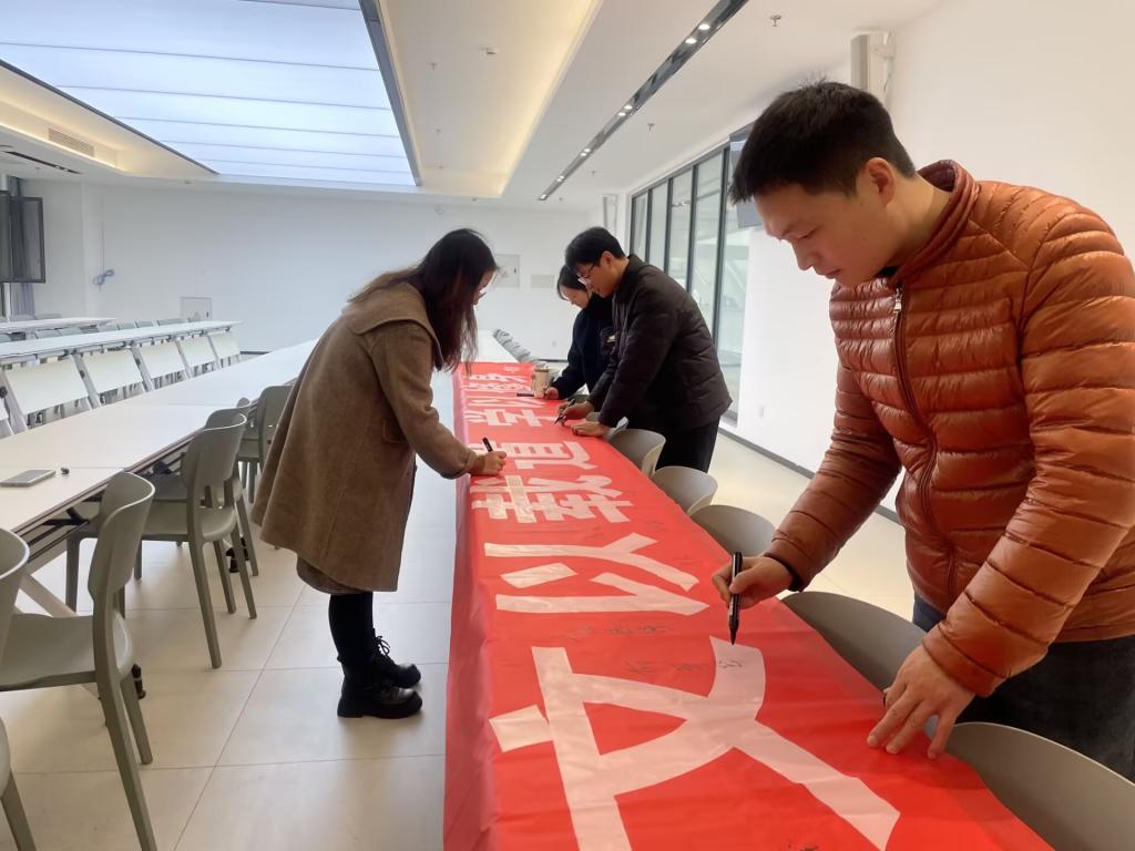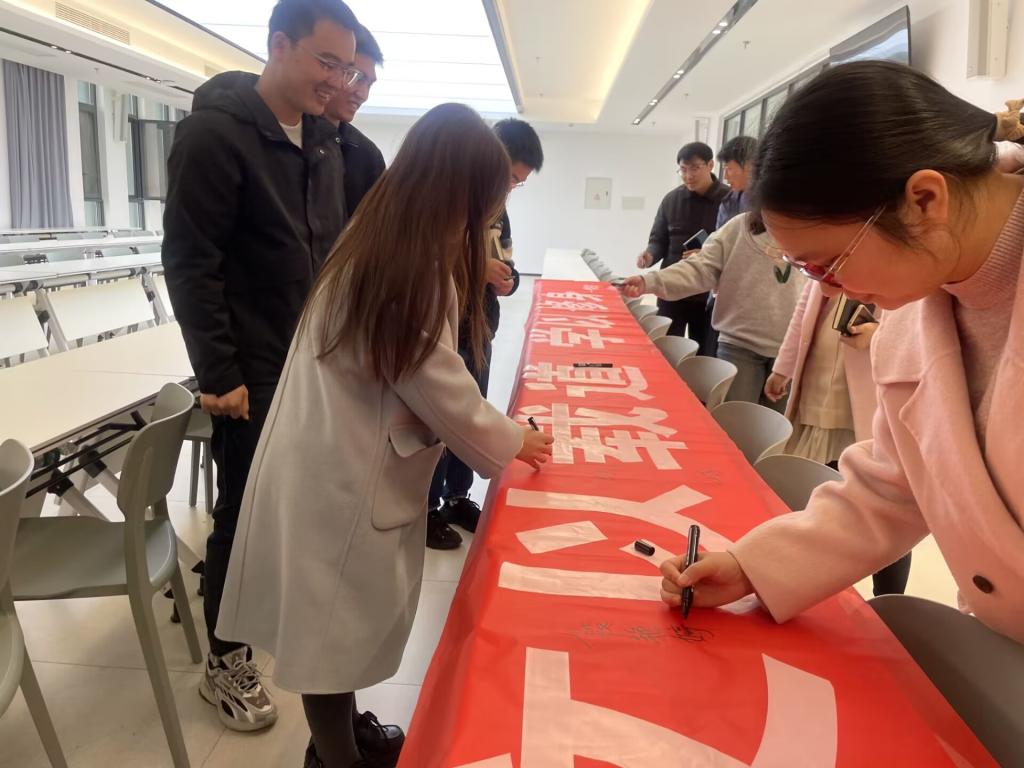 接着大家依次在“文以载道,学以修身”条幅上签名,强化责任担当,牢记育人使命,争做优良学风的践行者。
