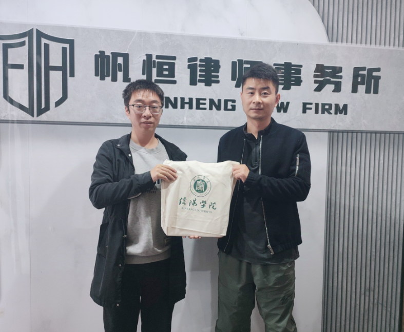张文静主任介绍了河南帆恒律师事务所的基本情况和主要业绩,并带领一行人参观了律所,展示了律所的办公环境。帆恒律所作为一个有着规范化服务的综合所,尤其在社区矛盾化解方面有丰富经验。张文静主任强调,热烈欢迎信阳学院的法学生前来律所实习,建立法学专业学生实践基地有利于提高学生的实践能力,同时也欢迎优秀的人才加盟该律所。寇博文副院长、王章力老师对河南帆恒律师事务所的认可与支持表示感谢,随后双方就律所业务范畴及学生来实习的部门等事宜展开深入交流,最终对建立实习基地的具体事项达成了共识,并签署社会科学学院法学专业学生实践协议。另外,老师们还对校友董晨律师进行亲切地问候,并发放了校友纪念品。