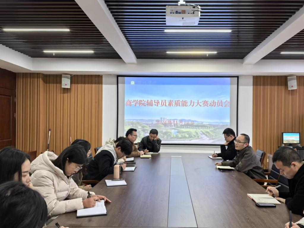 为加强辅导员队伍建设,提升辅导员理论水平和职业素养,使辅导员职业能力提升与学生成长成才需求紧密结合,进一步推动思政育人与学生工作管理水平迈向新高度,11月19日下午,商学院在综合楼715会议室召开辅导员素质能力大赛动员会。学工负责人花端阳和全体辅导员参加了此次动员会。