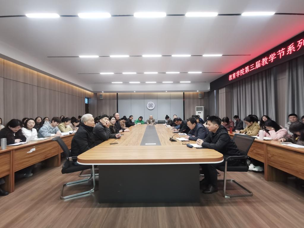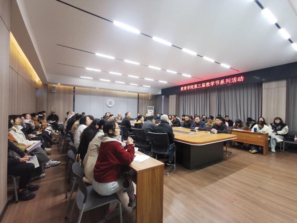 11月19日下午,教育学院在社科楼109会议室举办了第三届“教学节”系列活动之教学改革项目成果报告。名誉院长、党总支书记刘颖方,副院长段海丹及专家教授和全体青年教师参加了此次活动。