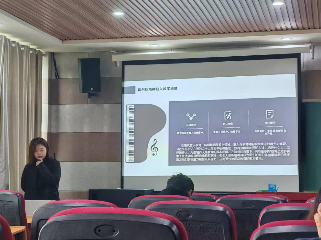 讲座中,黄蕊老师以钢琴教学为切入点,深入剖析了创新思想在教学中的重要性。她提出,应将创新理念融入教学思维,充分利用现代教学设备提升教学质量和效率。黄老师强调,音乐教育应注重多方面发展,帮助学生树立信心,因材施教,并注重课堂反馈的精准度,追求质量而非数量。教师应成为课堂的引导者,要结合学生善于运用多媒体媒介的特点,引导学生在更广阔的领域积极探索,提升学生的作品鉴赏能力和音乐创新能力。