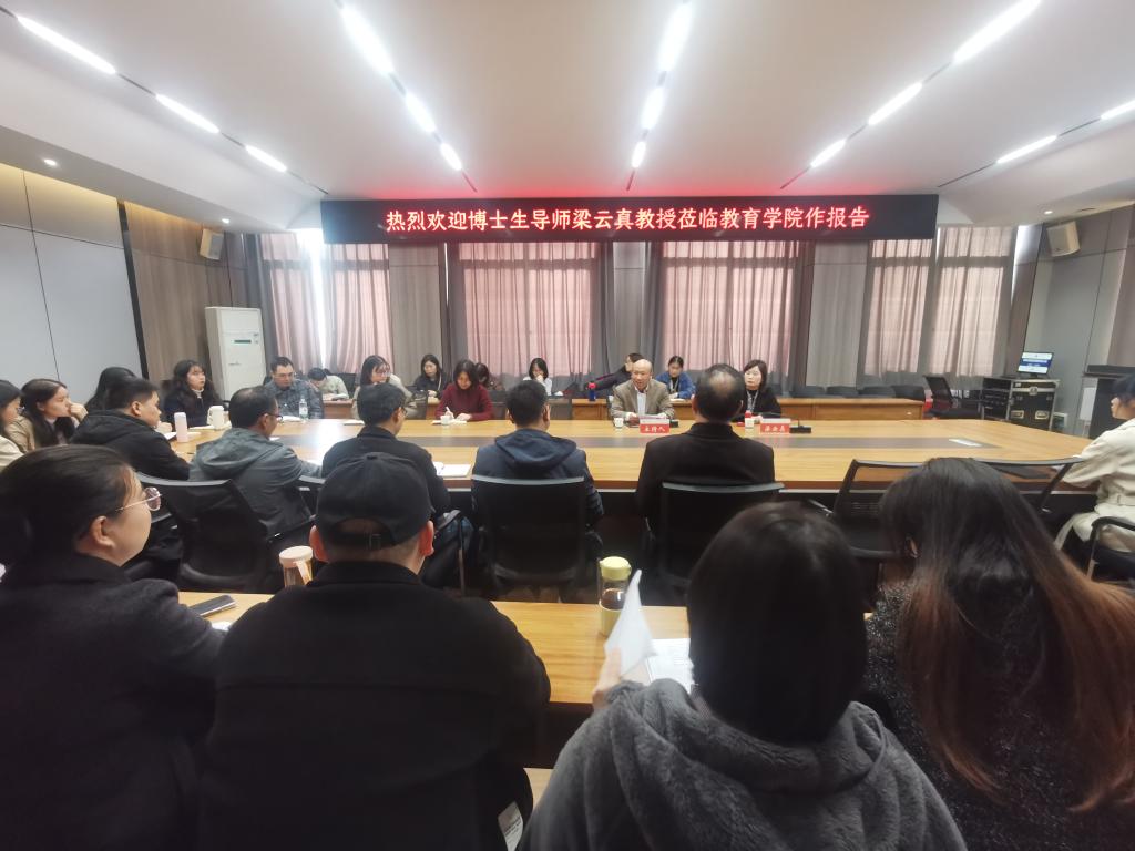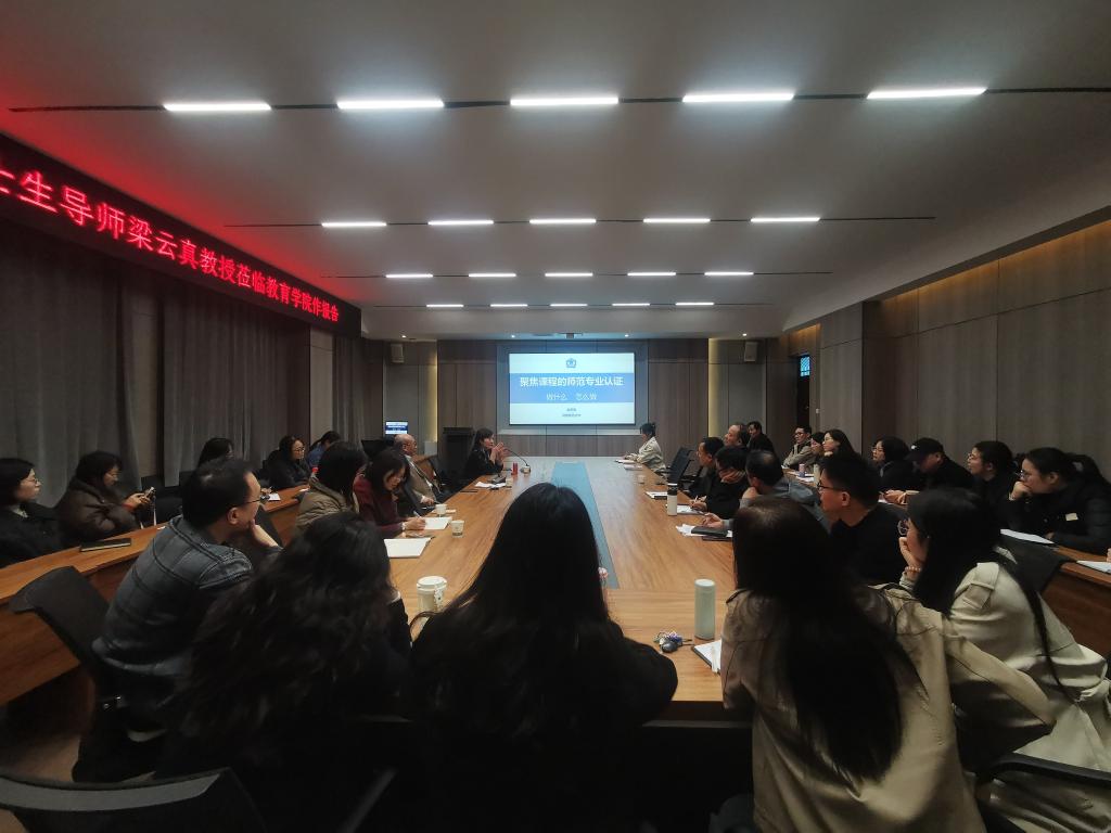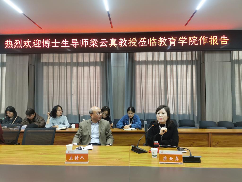 11月21日下午,教育学院邀请河南师范大学博士生导师梁云真教授在社科楼109会议室作了题为“聚焦课程的师范专业认证:做什么和怎么做”的报告,名誉院长、党总支书记刘颖方、副院长段海丹、专家教授赵国权和全体无授课任务的青年教师到场聆听了报告,报告会由名誉院长主持。