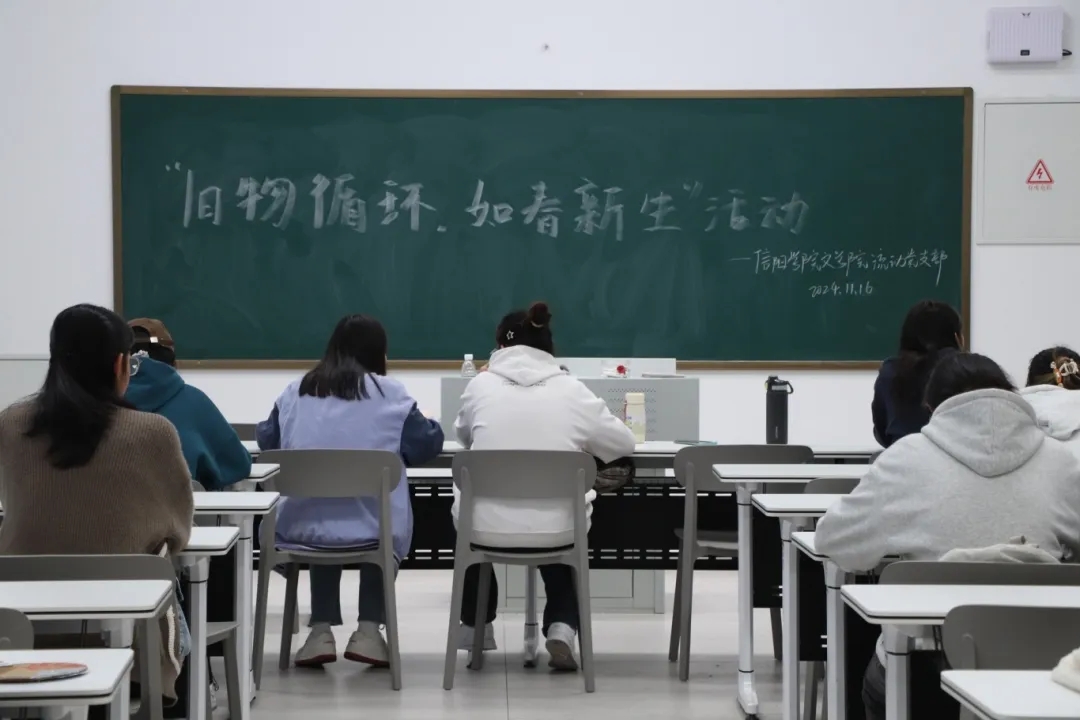 为提升同学们的环保意识,把环保理念更好地融入日常生活中,创造更加美丽的校园。11月中旬,我院流动党支部于教一楼104、105教室举办“旧物循环,如春新生”活动,面向文学院全体在校生展开,流动党支部赵家明、李梦瑶、马草青、耿峥、王含菲、高依、毛心怡、万云逸、魏子欣、刘白雪担任此次活动评委。