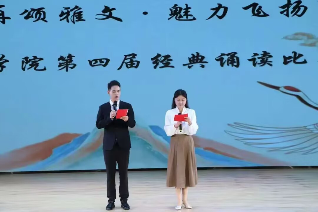 为引导学生积极学习中华优秀传统文化,研读优秀文化典籍,营造良好的诗歌学习氛围。11月21日上午,我院于教一楼113演播厅举办第四届“再颂雅文·魅力飞扬”诵读比赛。文学院教师胡佳颖、王伟伟、时习、刘礼婷出席本次比赛并担任评委。本次比赛由咸雅琪、谢龙龙担任主持人。