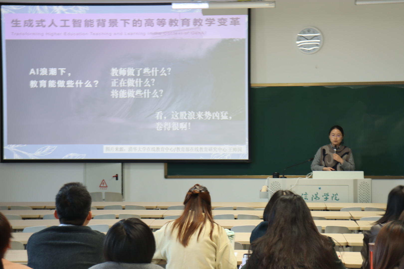 报告会的最后,罗院长以流利的双语进行了总结讲话。罗院长着重强调,外国语学院一贯高度重视青年教师的成长与能力提升,积极倡导科研与教学研究并重的发展策略。他进一步指出,人工智能技术在教育领域的应用为实现个性化教学与大力培养模式的高效融合提供了有力支持。罗院长勉励全体教师,应加深对人工智能技术的认知,积极学习并灵活应用于教学实践中,同时坚守以学生为中心的教育理念,不懈推动教学改革与创新及持续提升教学质量与效果。