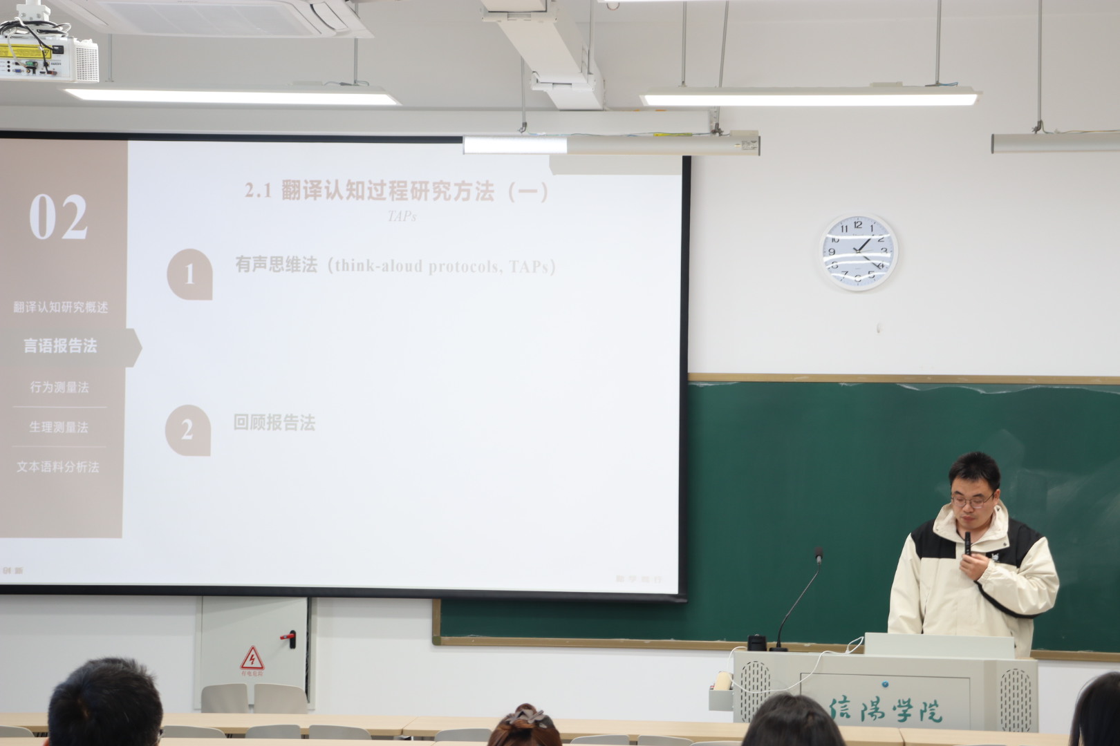 许超老师对《翻译认知过程研究方法》进行了深入的剖析。他详细介绍了翻译认知研究的相关概述,以及言语报告法、行为测量法、生理测量法和文本语料分析法等研究方法,揭示了如何运用科学严谨的方法剖析口笔译的内在机制。这场报告对于翻译专业的师生以及从事翻译研究与实践的人员而言,是一次难得的专业探索机会,有助于提升翻译质量与效率。