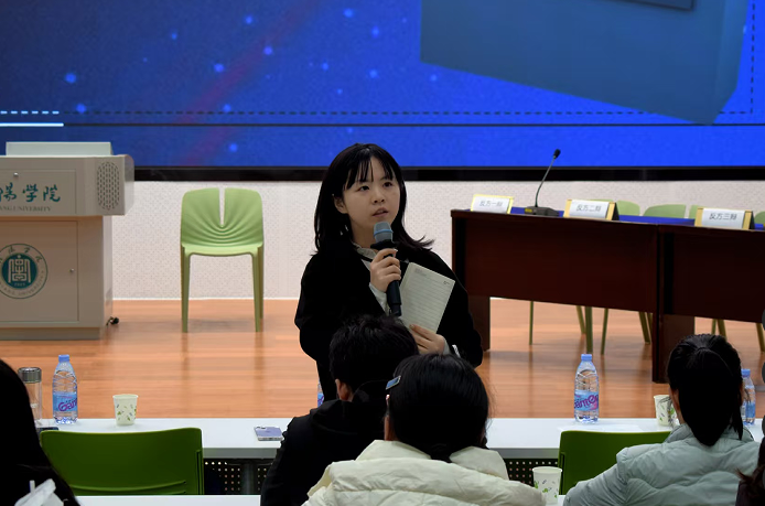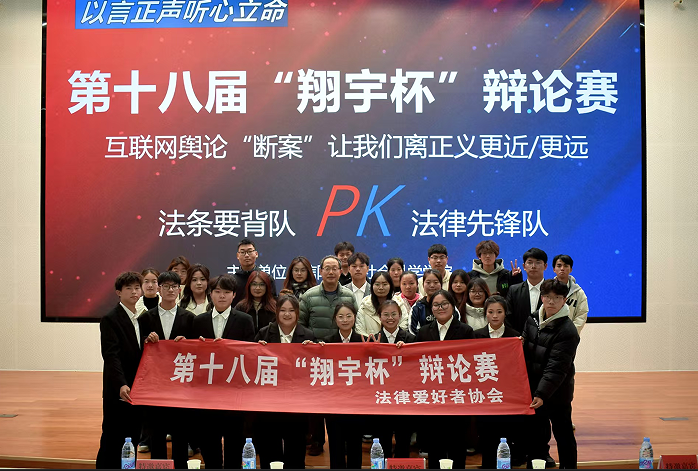 本次辩论赛紧跟时事热点,以“互联网舆论‘断案’,让我们离正义更近/远?”为辩题,旨在引导大学生深入思考法律问题,锻炼法律思维。辩论赛以社团自制的短片《舆论的天平》拉开比赛序幕。正反双方围绕辩题展开激烈辩论,引得观众激情澎湃,掌声连连。
