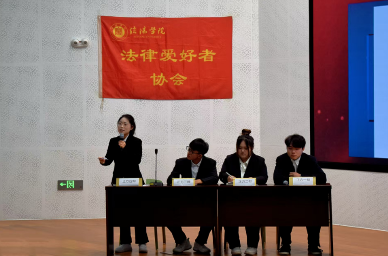 11月26日,由社会科学学院主办、法律爱好者协会承办的第十八届“翔宇杯”辩论赛在南湖校区教二楼117学术报告厅成功举办。本次辩论赛特邀信阳市中级人民法院法官戴玉曼、信阳市浉河区检察官游忆,以及河南涵信律师事务所律师张昊、刘玉凡莅临指导。同时出席本次辩论赛的领导老师有学院院长郭志祥,社团指导老师张雪梅、胡晶,法学专业骨干教师闫春丽、郝斌、刘君辉、陆田、王海云及辅导员老师。