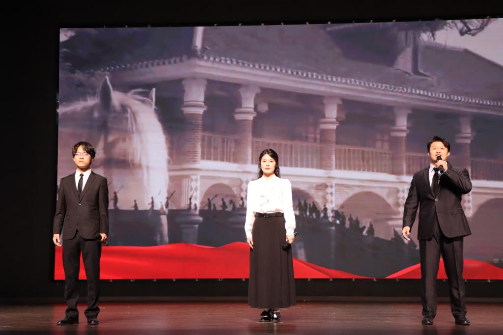 经过一系列紧张而激烈的比拼,备受瞩目的获奖名单正式揭晓:外国语学院杜东洛、文学院马晓彤、教育学院刘一曼、数学与统计学院赵艺帆荣获“红色经典诵读先锋”荣誉称号。教育学院、大数据与人工智能学院的《每当我举起右手》及美术与设计学院的《月光下的中国》荣获一等奖;文学院的《中华颂》《大写的中国》,数学与统计学院的《英雄》,教育学院、理工学院的《诗颂风华》荣获二等奖;理工学院的《中国心》《祖国在上》,土木工程学院的《脊梁》,外国语学院的《青春中国》,商学院的《雪落在中国的土地上》,大数据与人工智能学院、社会与科学学院的《党旗照耀着中国》荣获三等奖。