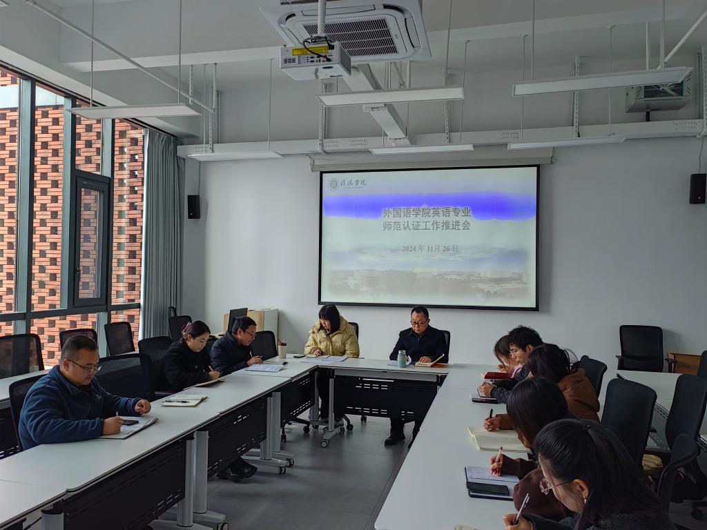 11月26日下午,外国语学院在教二楼316会议室召开英语专业师范认证工作推进会,旨在进一步落实师范认证相关要求,提升英语专业人才培养质量。外国语学院院长罗德喜、副院长李静、班子成员和骨干教师参与了本次会议。