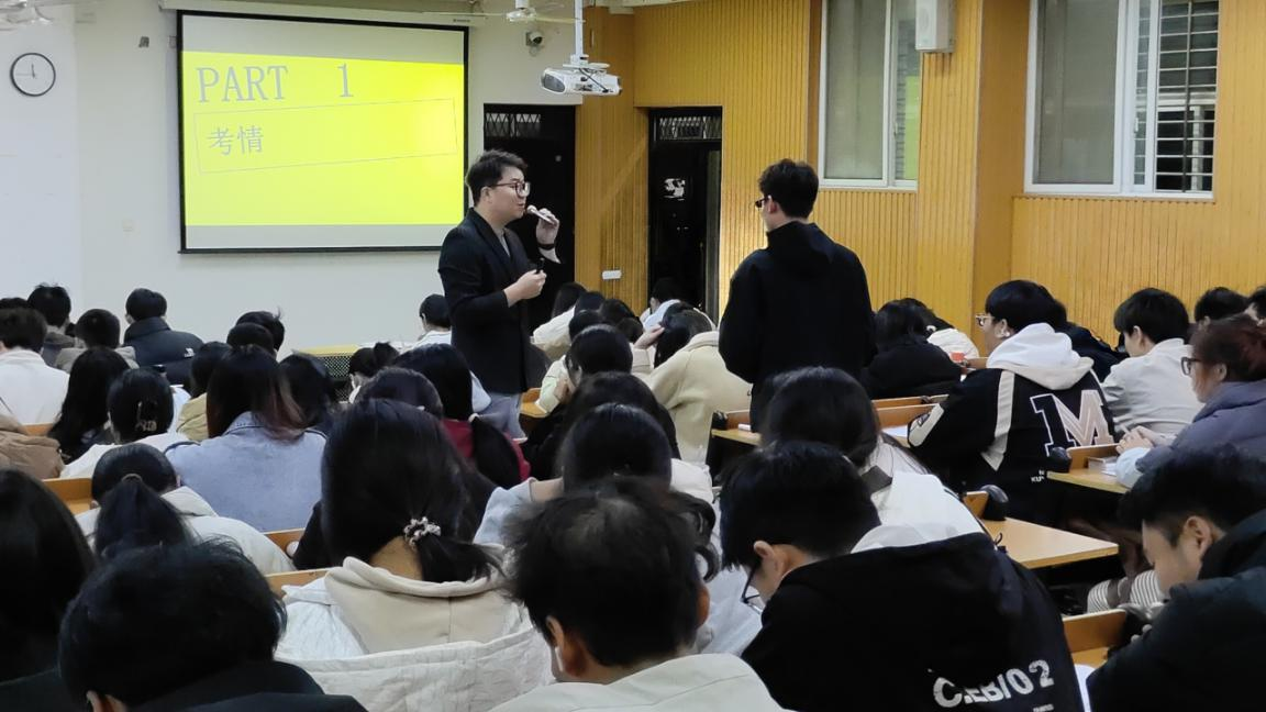 讲座现场,同学们满怀热情与期待,早早来到教室,渴望在这场知识盛宴中汲取宝贵经验,为即将到来的四六级考试增添信心与实力。讲座伊始,程利洪老师为参会学生发放了押题讲义,通过这份讲义,同学们能够更清晰地了解考试内容和备考方向,为接下来的讲座打下了坚实的基础。随后,程老师从考情、方法、押题三个方面深入讲解。针对同学们的疑问,程老师现场进行解答,祝愿理工学子都能够在四六级考试中取得优异的成绩。