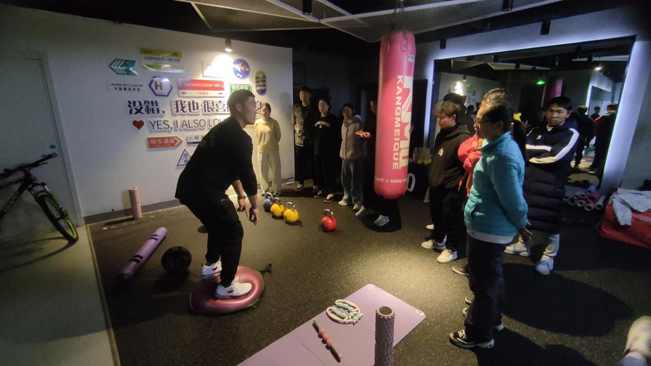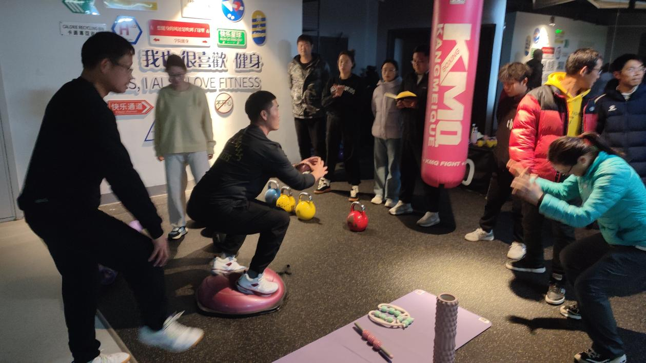 健身房胡伟老师认真讲解、示范动作,药球抛掷强化全身爆发力,模拟赛场传球、击球瞬间力量释放;抗阻冲刺借助阻力带,挑战高速奔跑时的体能极限,提升冲刺爆发力与耐力。胡伟老师还详细讲解了篮球需频繁跳跃下的耐力、足球长距离奔袭耐力及网球多回合挥拍力量耐力等知识点。