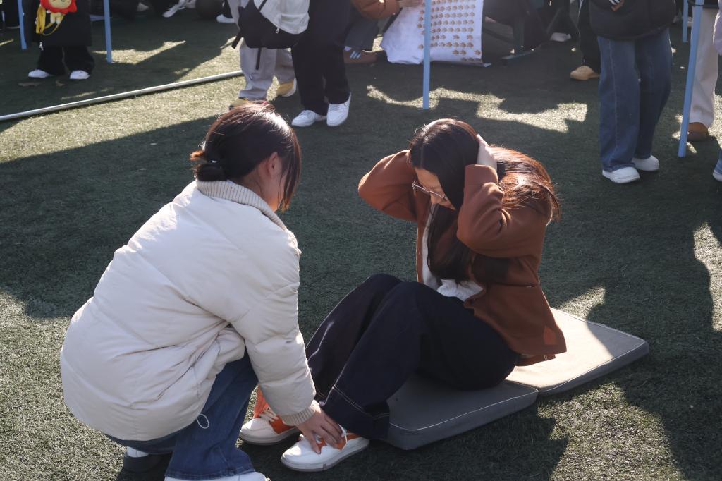活动现场的项目设置丰富多样,既有考验体力与毅力的俯卧撑、仰卧起坐等传统项目,也有锻炼脑力与反应速度的最强大脑比拼、五子连珠游戏等趣味环节。此外,还有螃蟹赛跑比赛带来的速度与欢乐,以及原地旋转游戏展现的平衡力与速度并存。学生们在各类项目中尽情挥洒汗水,体验着竞技的魅力与乐趣。