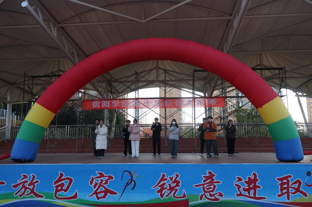 为激发学生挑战自我、超越极限的热情,丰富校园文化生活,营造积极向上的校园氛围,11月30日,由团委主办、学生会承办的信阳学院第十届校园吉尼斯在东区田径场成功举办。张冰轶、路洋铜主持了本次活动的开幕式。