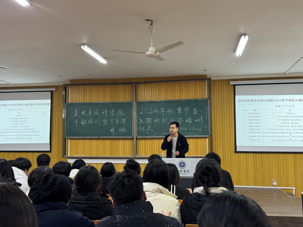 为深入学习贯彻习近平新时代中国特色社会主义思想、党的二十大精神、团十九大精神,增强我院青年学生干部、入团积极分子的思想政治理论水平和业务工作能力,12月4日中午,美术与设计学院2024年秋季学生干部培训暨下半年入团积极分子培训开班仪式在艺术楼101举行。学院党总支书记郑山峰、团总支书记邓先强以及200余名学生干部和入团积极分子参加了此次大会。
