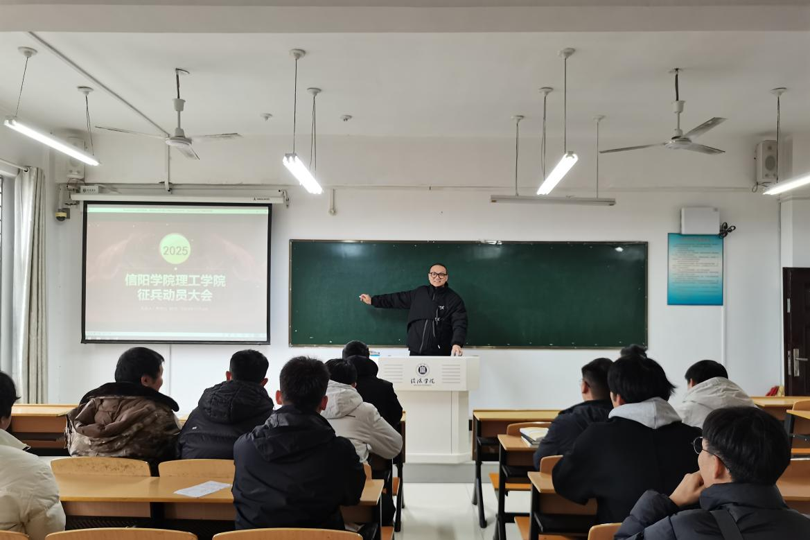 为帮助学生更好地了解征兵政策,鼓励大学生积极投身军营报效祖国,激发同学们参军入伍的热情。12月4日,理工学院于理工楼503教室举行了2025年征兵动员会。理工学院学工秘书杨晓杰、全体辅导员老师、2021级预征预储男生和低年级部分学生代表参加了动员会。