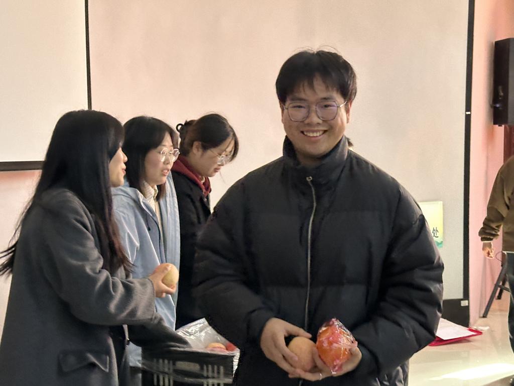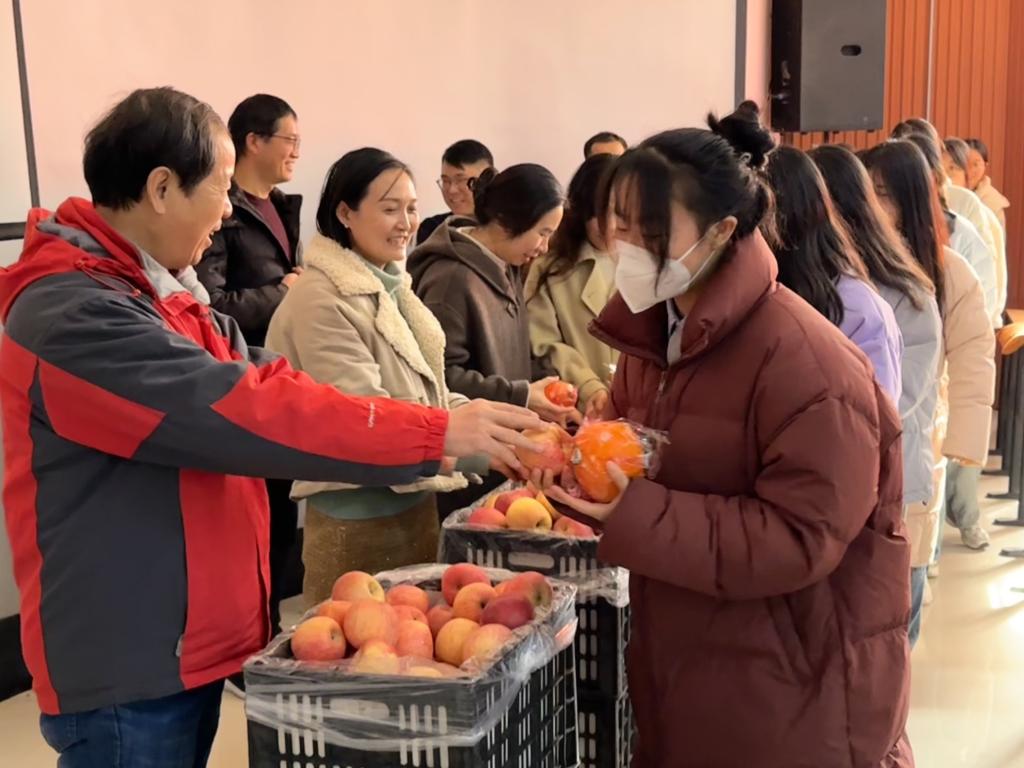 学院向考研同学发放了精心准备的“考研加油包”:考研复习秘籍,橙子、苹果等美好寓意的福包,寓意考研学子平安喜遂,称心如意,早日上岸。
