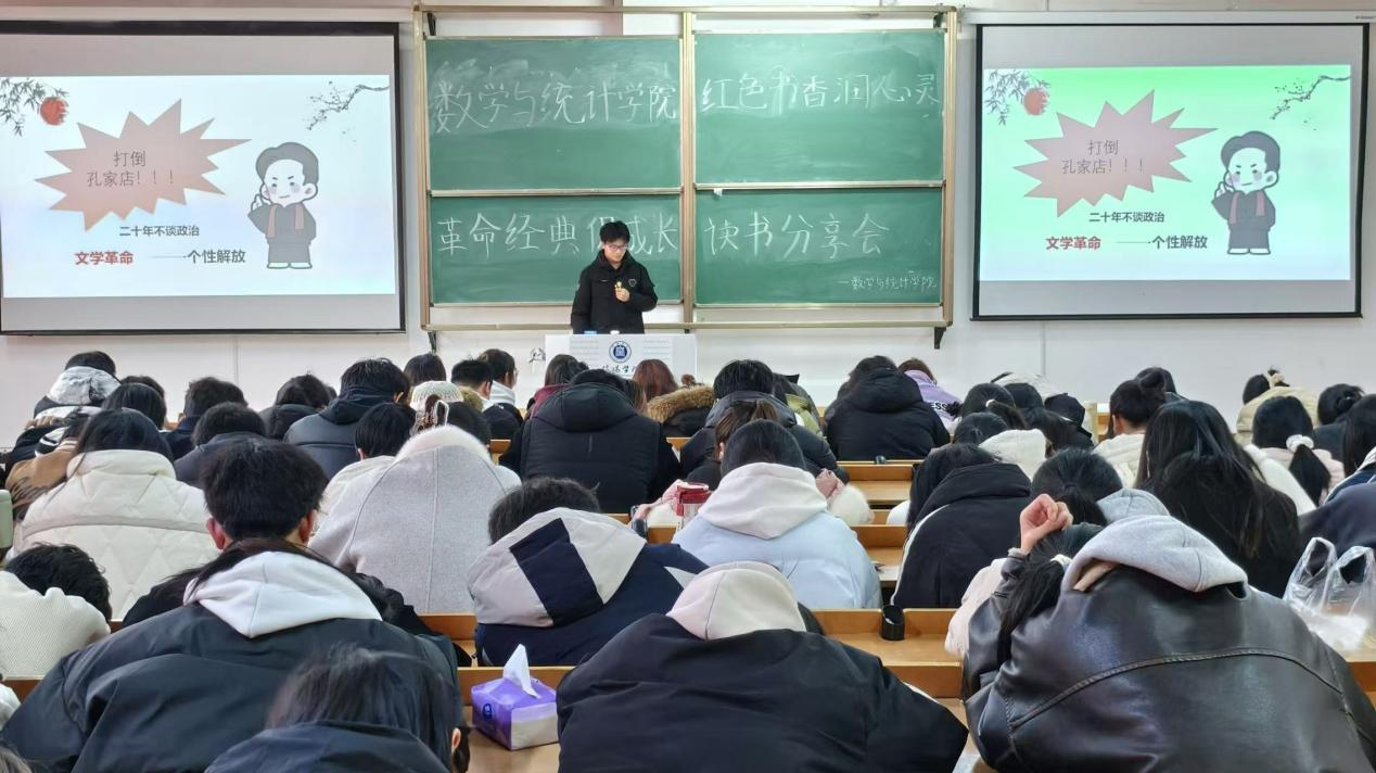 为激发学生的爱国情怀和读书热情,传承红色精神、增强文化自信、丰富文化底蕴,12月5日中午,数学与统计学院在社科楼219教室举办“红色书香润心灵,革命经典促成长”读书分享会。