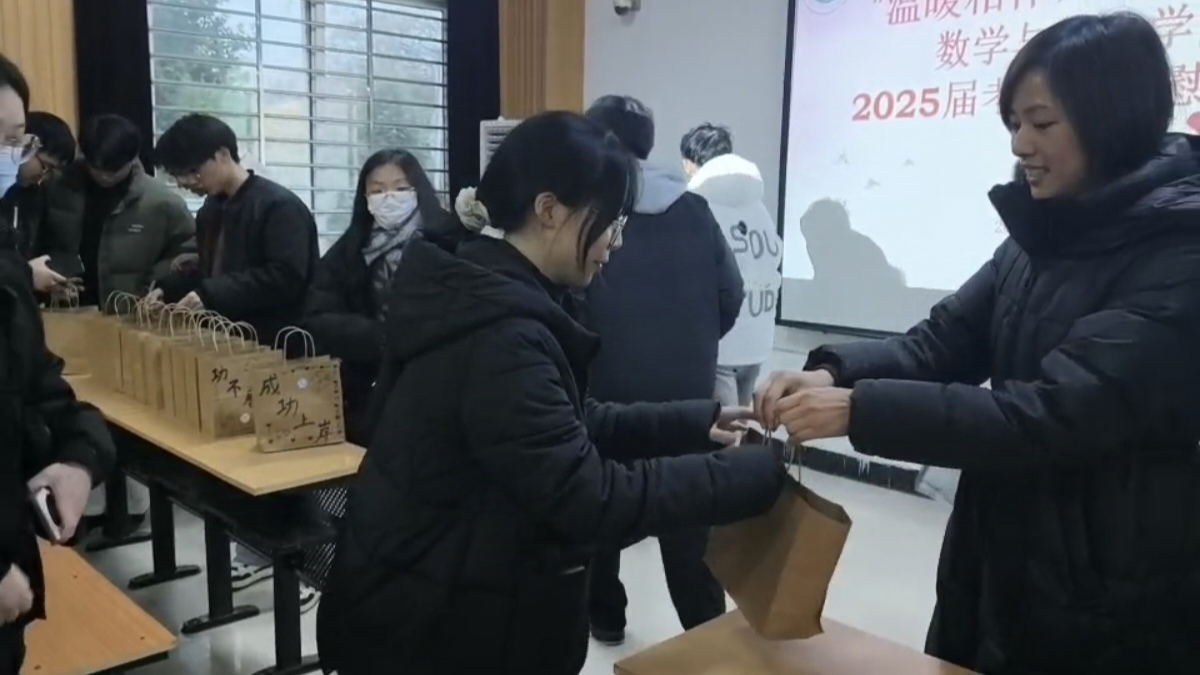 为帮助考研学子提振士气,缓解备考压力,12月10日下午,数学与统计学院在社科楼112教室举办“温暖相伴,研途璀璨”2025届考研学子慰问活动,数学与统计学院院长俞迎达、党总支书记高昌慧、学工干事田媛、全体辅导员参加了此次活动,本次活动由高昌慧主持。