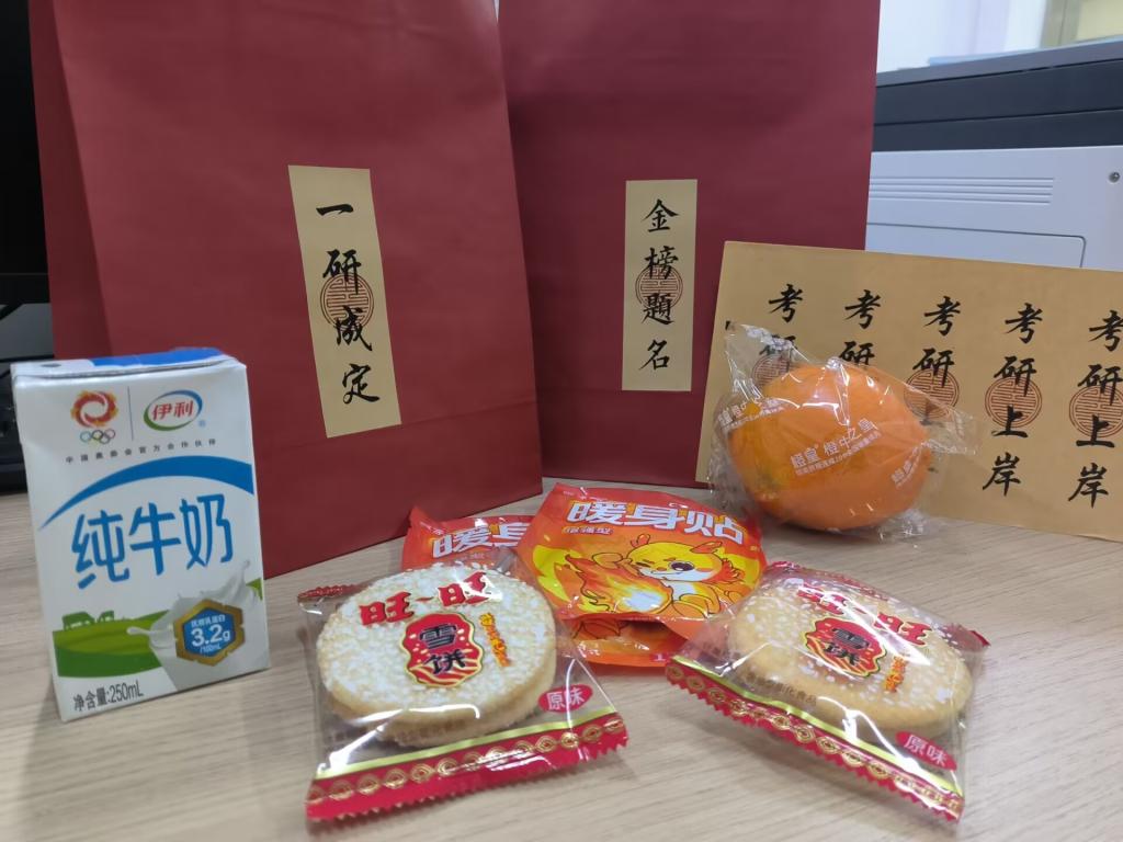 最后,参会的学院领导及辅导员向考研学子发放了考研慰问物品,并再次为他们加油鼓劲。此次慰问会,不仅体现了学院对考研学子的关怀,提升了同学们备战的信心,同时也有力地促进了学院优良学风的形成。