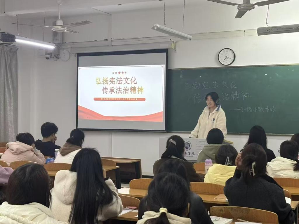 一、营造法治宣传浓厚氛围。社会科学学院、教育学院通过微信公众号制作专题推文推介法律知识、土木工程学院、理工学院、外国语学院在楼宇间LED屏幕播放法治教育宣传标语、商学院、大数据与人工智能学院制作宣传展板等形式扩大法治宣传教育影响力;全体辅导员召开法治宣传主题班会,组织学生观看宪法宣传视频、开展法律知识竞答等,让同学们通过线上线下的活动持续增强法治意识。