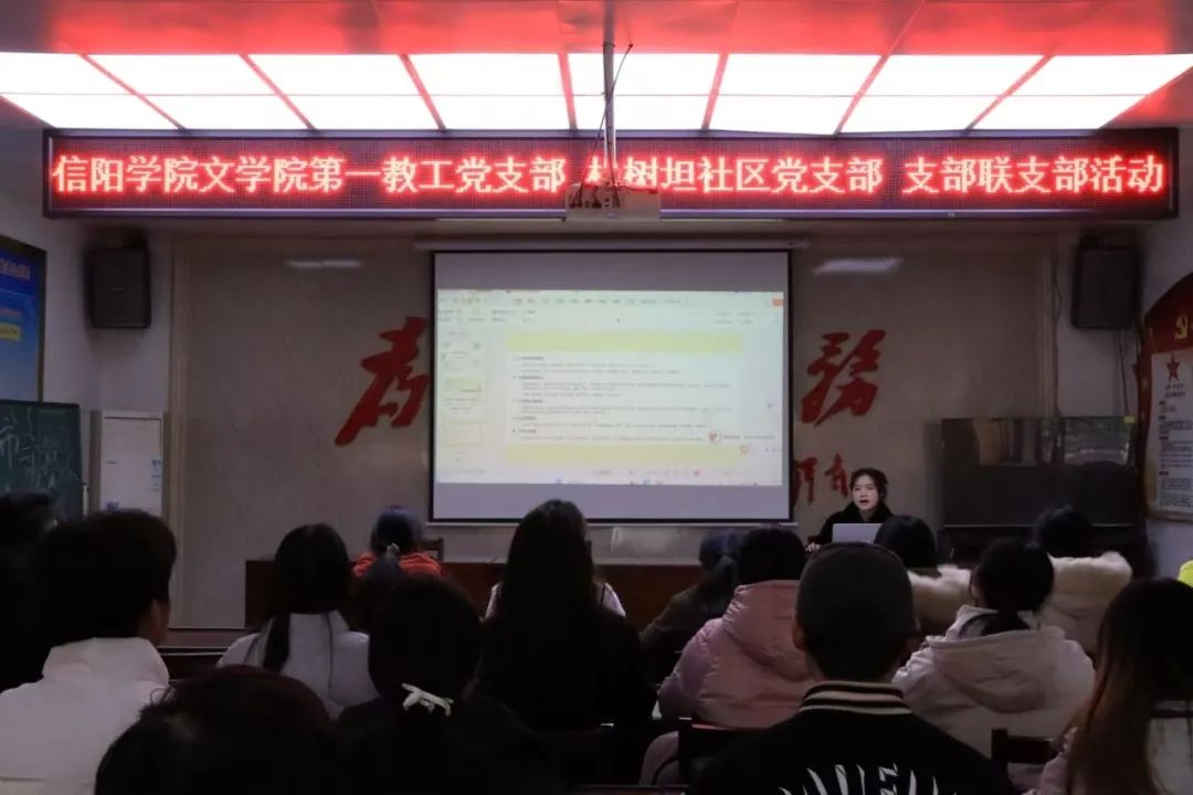 为贯彻落实市委“支部联支部”活动要求,加强基层党组织建设,提高党组织的凝聚力和战斗力,增强居民环保意识。12月中旬,文学院第一教工党支部联合松树坦社区党支部开展环保知识讲座。此次讲座由文学院辅导员冯叶老师主讲,面向松树坦社区党支部成员和志愿服务者开展。