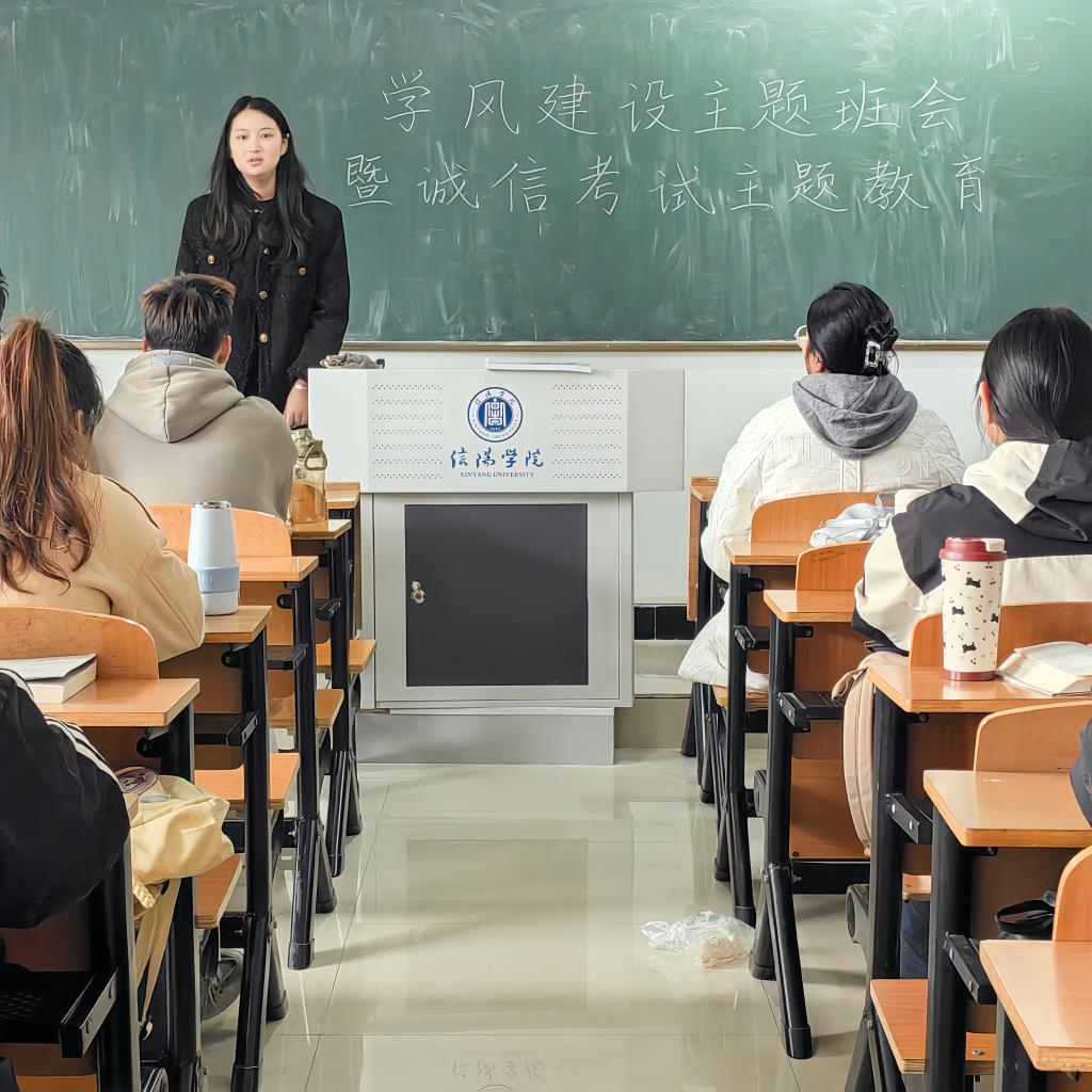 会上,团总支书记姜红老师宣读了信阳学院普通本科、专科违纪处分的相关文件。她强调考试违纪作弊的严重后果,希望同学们严守考试纪律,诚信考试。