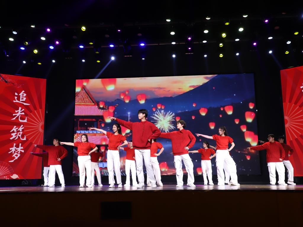 12月17日晚,美术与设计学院“逐光筑梦,艺路繁华” 2025年元旦师生联欢晚会在学校音乐厅精彩上演。副校长王志华,学院院长张瑞瑞、党总支书记郑山峰、教学副院长王伟、专家教授、教研室主任、全体辅导员和青年教师以及近千名学生观看了晚会。