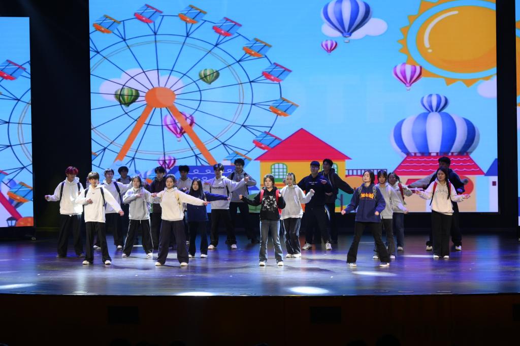 全体辅导员和学生干部表演的开场俏皮舞拉开了帷幕。集体舞蹈《新年快乐》喜庆欢快、活力四射。赵瑞乐、马晓睿两位同学合唱的《太阳》以其激昂的旋律和深情的演绎,赢得了全场的持久掌声。活力四射的现代舞和走秀表演点燃了现场气氛,展示了青春的激情与梦想。袁汝波教授的二胡独奏将经典曲目《赛马》《洗衣歌》表现得淋漓尽致。解开老师的萨克斯独奏用其悠扬的音色和精湛的技艺,诠释了《青鸟》的精彩。环境设计教研室教师表演的小合唱《这世界那么多人》用动听的歌声和深情的演绎,表达了对未来的美好憧憬和对新年的美好祝福。舞蹈《寄明月》和诗朗诵《月光下的中国》展现出对祖国美好的祝福。相声《大一生活二三事》、小品《诈骗联盟》和话剧《谁杀死了周日》用幽默而深刻的剧情讨论了校园生活和社会问题。最后,晚会在歌曲《明天会更好》中落下帷幕。