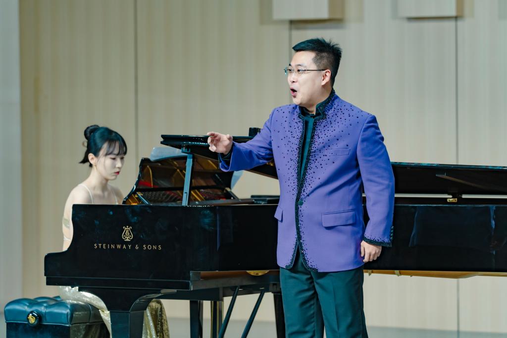 孙怡文带来的生动写实、诙谐幽默、节奏明快的东北民歌《看秧歌》,体现了东北民歌鲜明的文化背景,具有浓郁的地方色彩,表现了东北农村一位青春靓丽的姑娘,以看秧歌儿为借口,与情郎约会的生动生活场景;张梅鑫扎实的基本功展现了曲目深邃的情感、复杂的结构和对音乐艺术的深刻理解;王靖鑫带来的脍炙人口的赫哲族民歌,深情地描绘了赫哲人在山水间的生活场景,展现了赫哲人的风土人情,更传递了人与自然和谐相处的理念。老师们声情并茂、引人入胜的出色表演,赢得了现场观众的热情掌声和广泛赞誉。