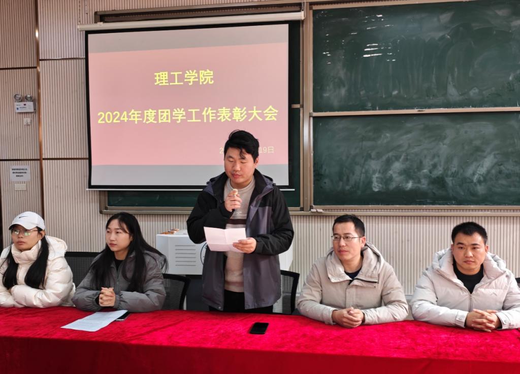 会议伊始,团总支副书记张家乐对2024年度团学工作进行了全面总结。他回顾了过去一年中,理工学院团学工作在各方面取得的显著成绩,并鼓励和引导学生干部继续努力。随后,学生会主席张羿杰宣读了理工学院2024年度学生工作表彰文件,并详细列出了获奖名单。
