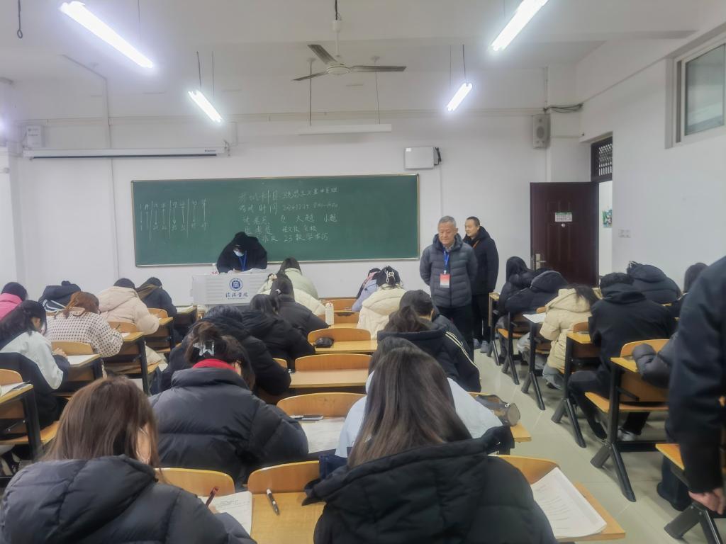 为严肃考风考纪,确保期末考试顺利进行,12月23日上午,副校长王强一行在数学与统计学院院长俞迎达、党总支书记高昌慧、副院长张聪等班子成员的陪同下深入各考场进行巡视检查。