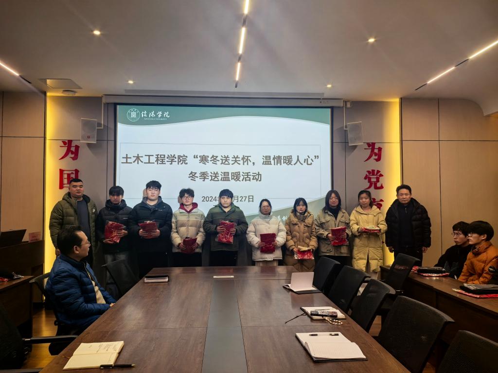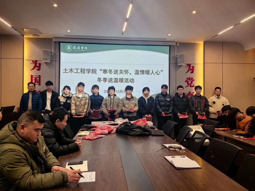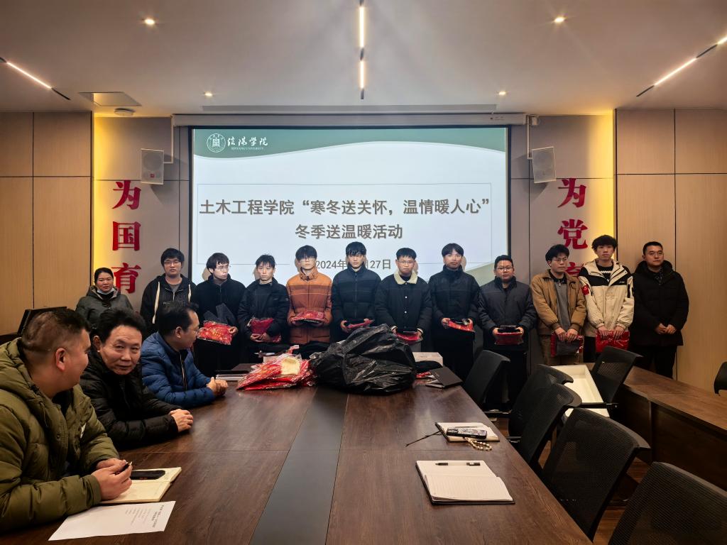 2024年寒假将至,土木工程学院根据信阳学院《关于开展2024年冬季送温暖工作的通知》要求,组织辅导员全面了解跟踪家庭经济困难学生面临的困难。12月27日下午,学院在理工楼112会议室举行了“寒冬送关怀,温情暖人心”冬季送温暖活动。土木工程学院名誉院长鲍鹏、党总支书记徐远东、教学副院长杨子泉、行政秘书郗利选、学工干事徐超、全体辅导员及受助学生参加了此次活动。