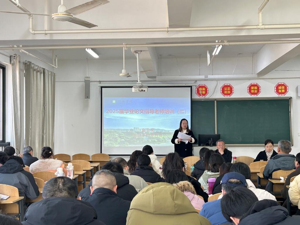 为提升毕业论文指导质量,确保2025届毕业论文工作顺利开展,12月31日下午,商学院在综合楼608教室召开2025届毕业论文指导老师培训会。会议特别邀请了跃客系统负责人王芳芳经理担任培训主讲人,商学院全体教师参加了培训会。