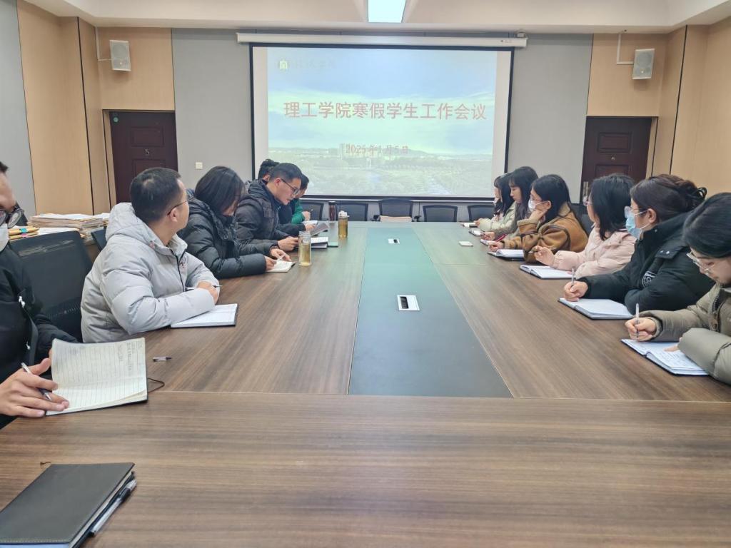 1月5日下午,理工学院学工队伍在理工楼201会议室召开寒假工作会议,党总支书记赵佳、学工秘书杨晓杰及全体辅导员参会。