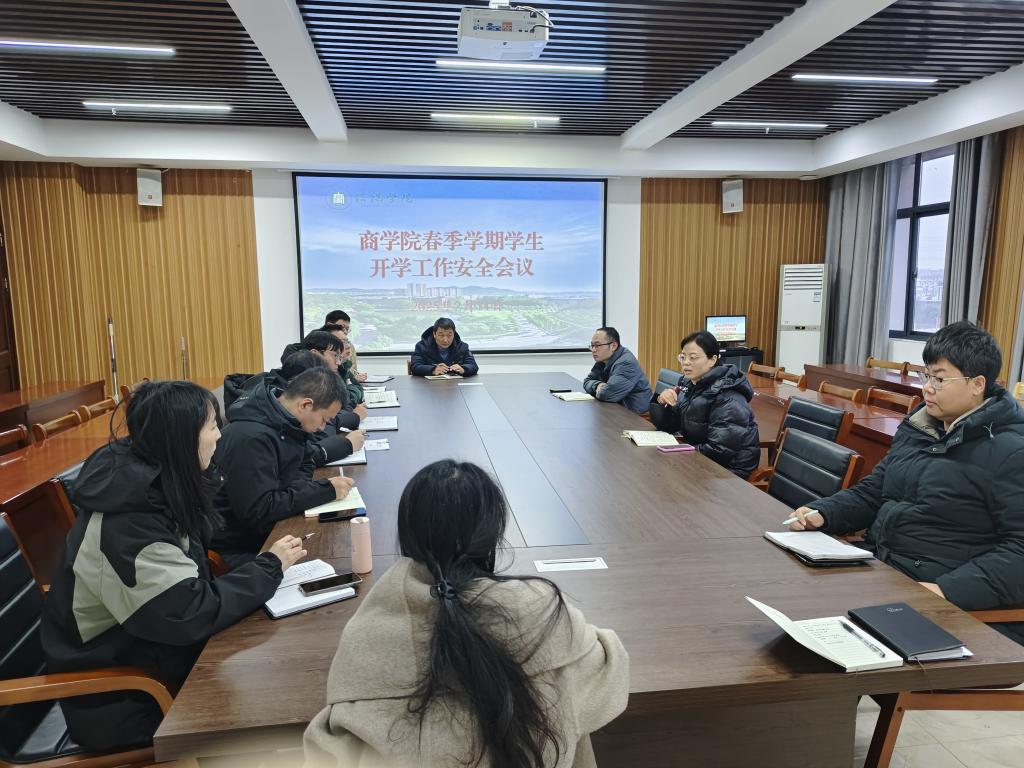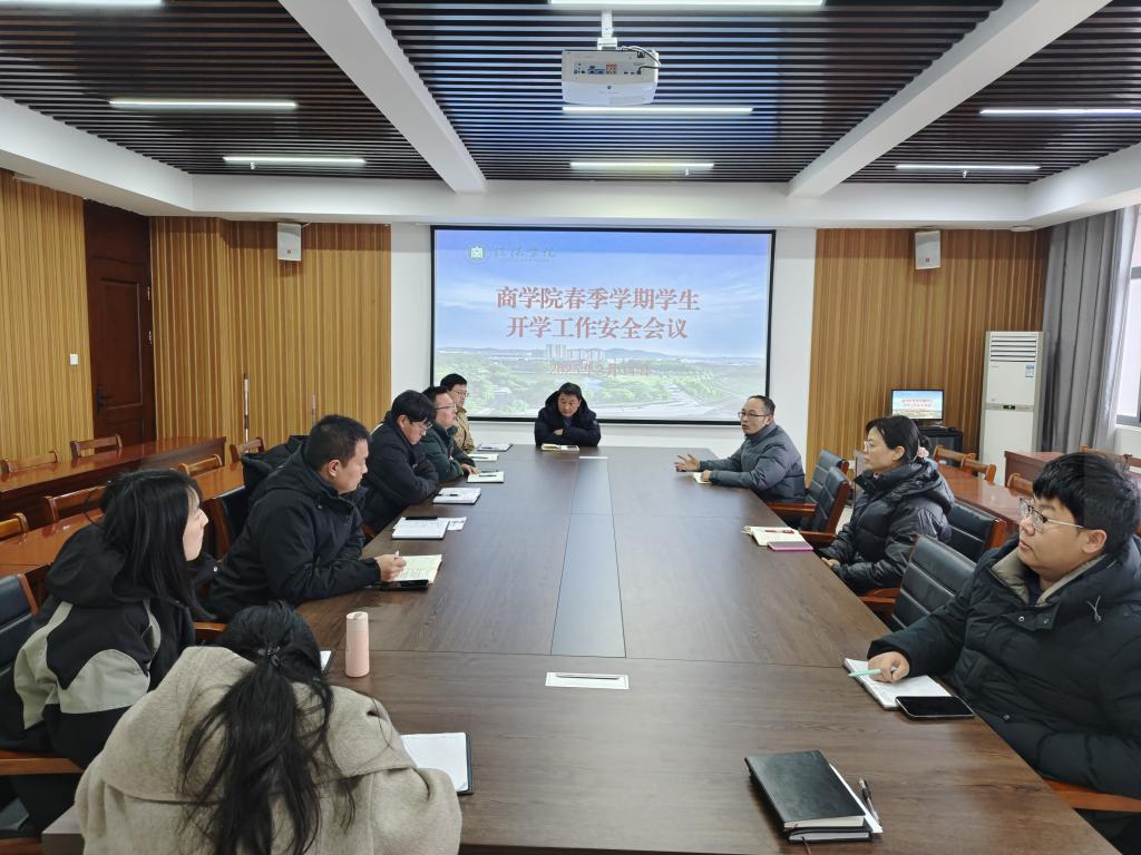 为确保2025年春季学期开学工作的平稳有序,全方位构建安全防护网,维护校园安全稳定,2月14日下午,商学院在综合楼715会议室召开2025年春季学期开学安全工作会议。商学院党总支书记胡秀云、教学秘书盛大俊、学工干事花端阳、行政干事王爱霞及全体辅导员参加了此次会议。会议由花端阳主持。