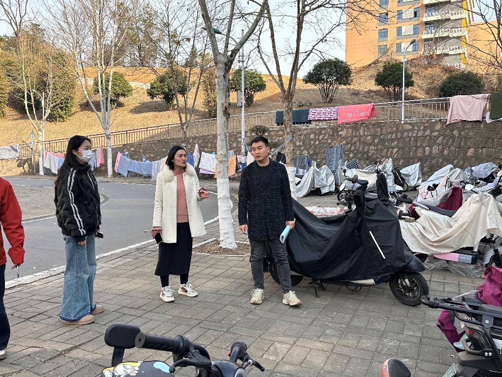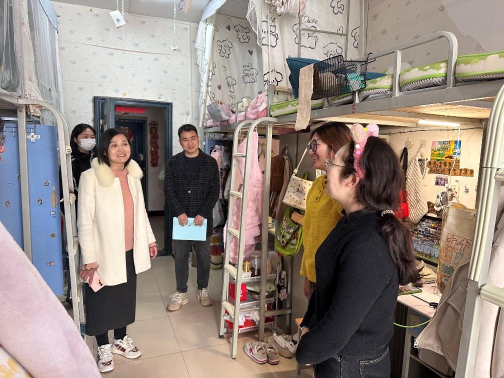 走访过程中,赵佳书记与学生进行了亲切的交流,她详细询问了同学们的住宿情况、生活需求及遇到的困难,提醒同学们要遵守学校公寓管理制度,注意用电安全。赵书记指出,宿舍不仅是同学们学习、休息的重要场所,更是培养学生良好生活习惯和团队精神的重要平台,同学们要严格遵守学院的各项规章制度,自觉维护宿舍的安全与秩序,共同营造一个文明、和谐、积极向上的宿舍环境,还鼓励同学们要珍惜大学时光,努力学习专业知识,积极参与各类实践活动,不断提升自己的综合素质和竞争力。除此之外,赵书记检查了宿舍周围电动车的停放情况,有针对性的提出多项建议。