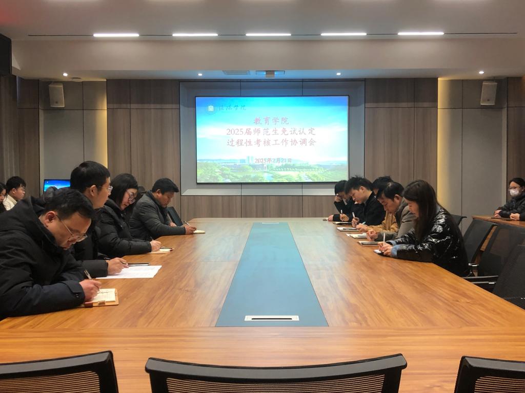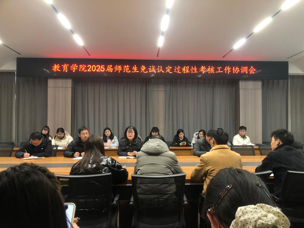 根据学校《关于开展2025届师范生免试认定中小学教师资格教育教学能力考核工作的通知》要求,2月21日上午,教育学院在社科楼109会议室举行了2025届师范生免试认定中小学教师资格培养过程性考核工作协调会,副院长段海丹、教学干事刘勋达、各教研室主任、2021级辅导员、2021级各班班干部及骨干学生代表参加了此次会议。会议由刘勋达主持。