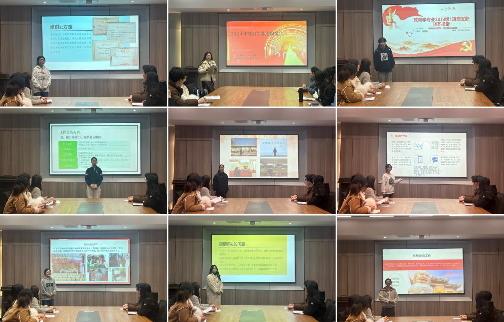 为深入学习宣传贯彻习近平新时代中国特色社会主义思想、党的二十大和二十届三中全会精神,压实基层团组织书记责任,进一步激发各基层团组织的组织力、引领力和服务力,教育学院于2月24日在社科楼109会议室召开了2024年度基层团组织书记述职评议会,学工干事胡超、团总支书记姜红、各年级团支部书记和学生会干部参加了此次会议,会议由团总支副书记沈昱含主持。