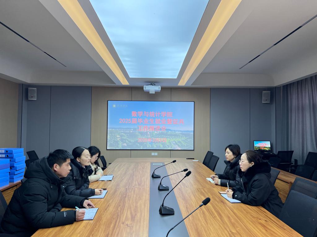 3月3日上午,数学与统计学院在419会议室召开2025届毕业生就业暨征兵工作推进会,数学与统计学院党总支书记高昌慧、学工干事田媛、全体辅导员参会,会议由田媛主持。