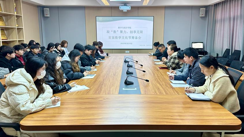 为做好首届数学文化节筹备工作,3月10日下午,数学与统计学院在社科楼419会议室召开首届数学文化节筹备会。党总支书记高昌慧、学工干事田媛、数学分析教研室主任王玉磊、全体辅导员、第六届主席团全体成员及各部门部长参加会议。会议由田媛主持。