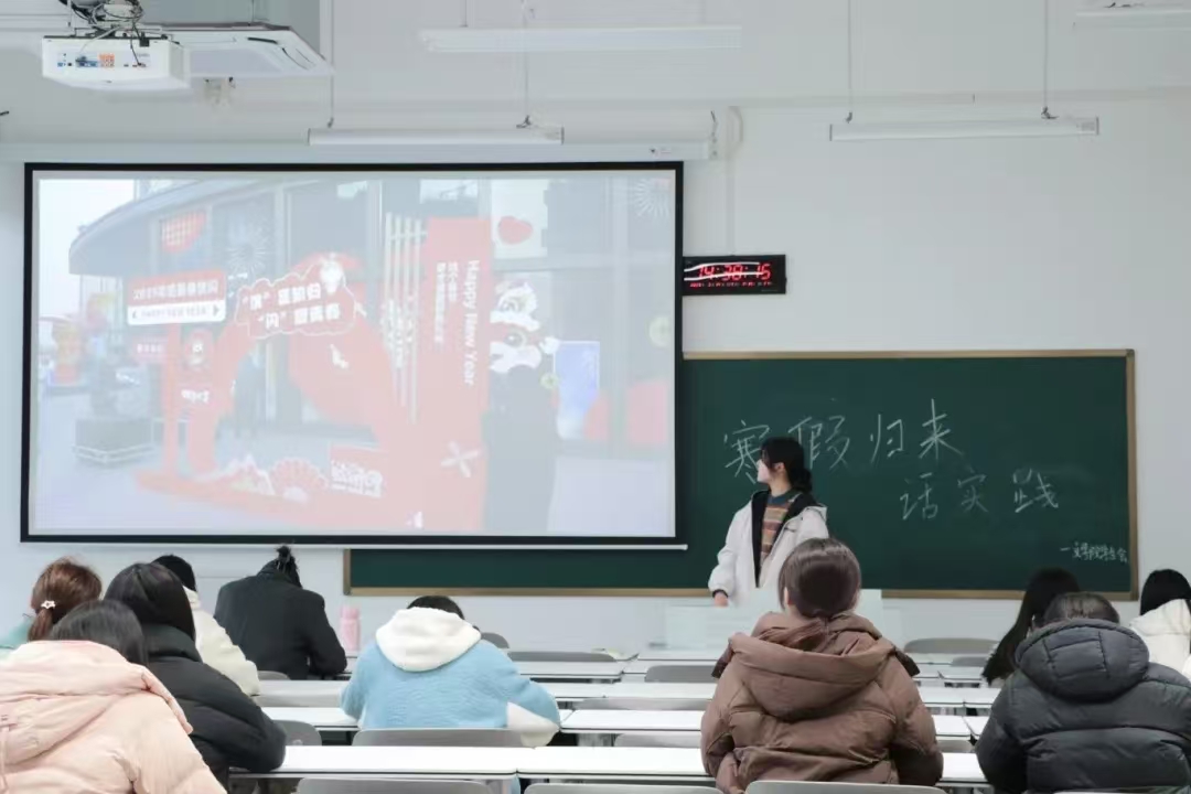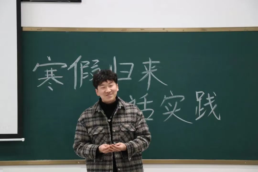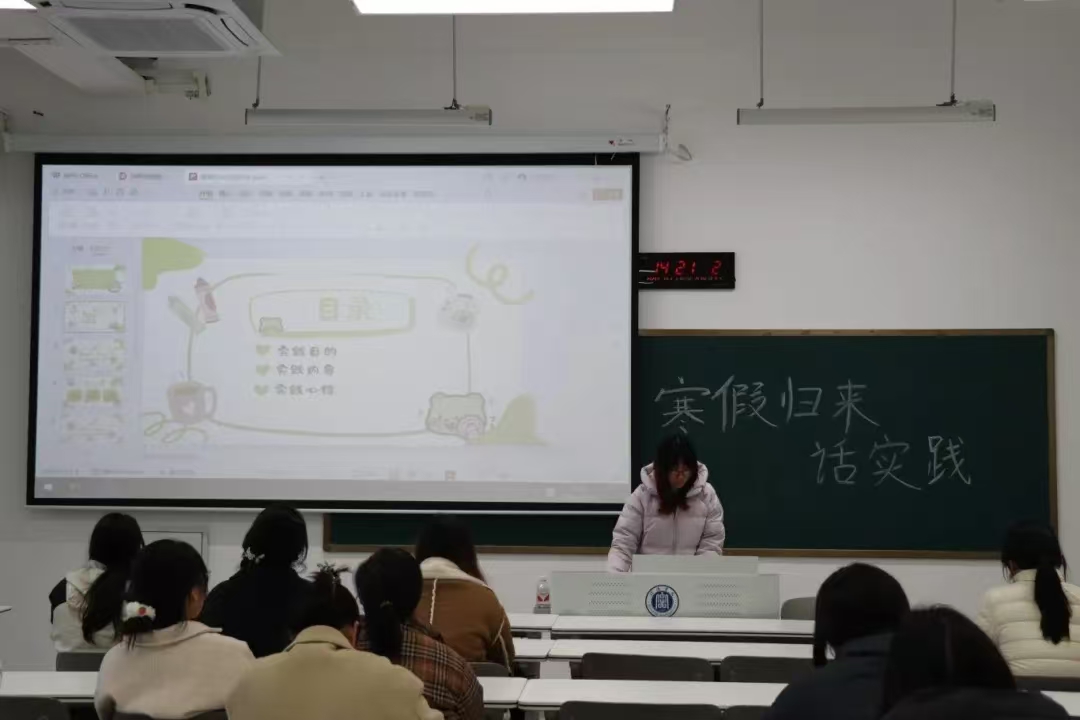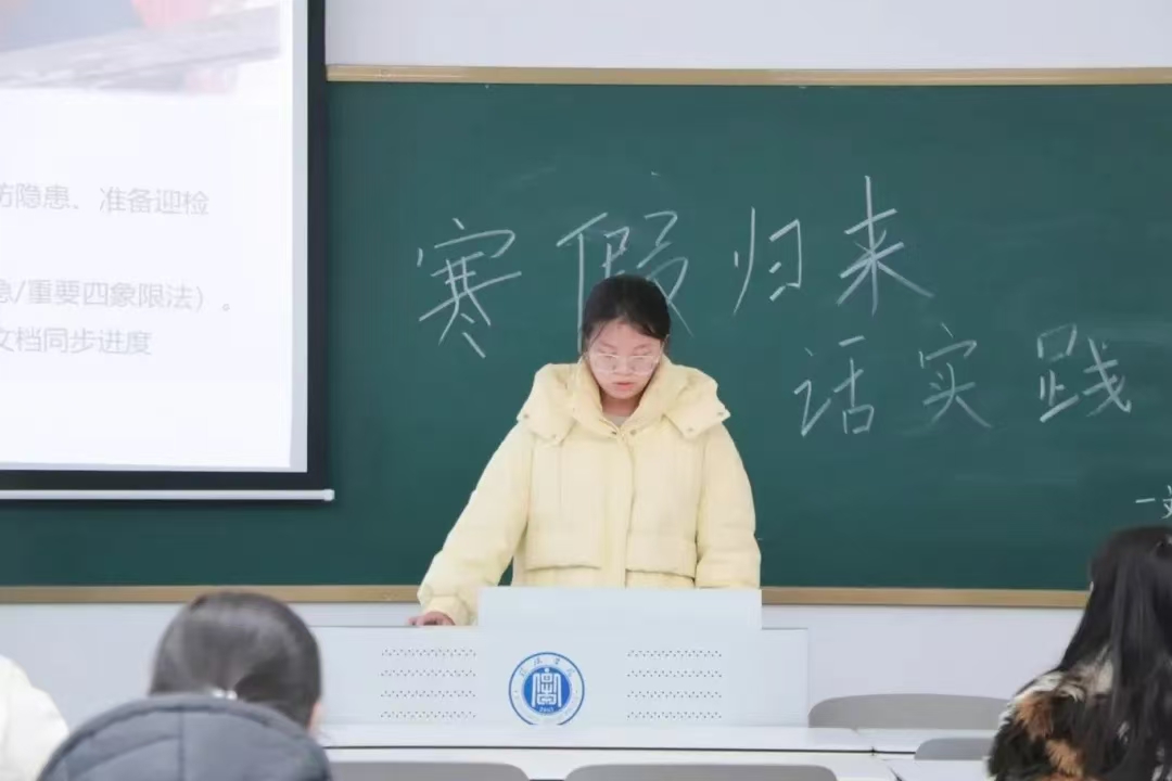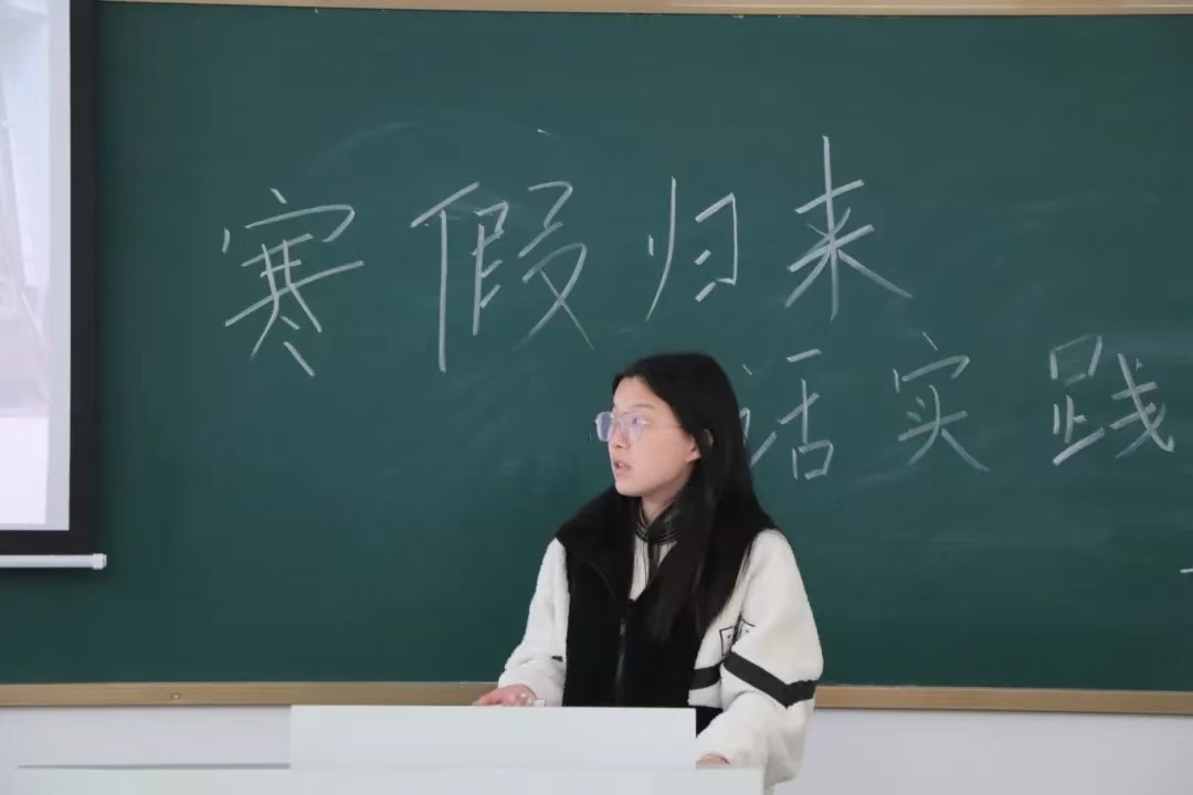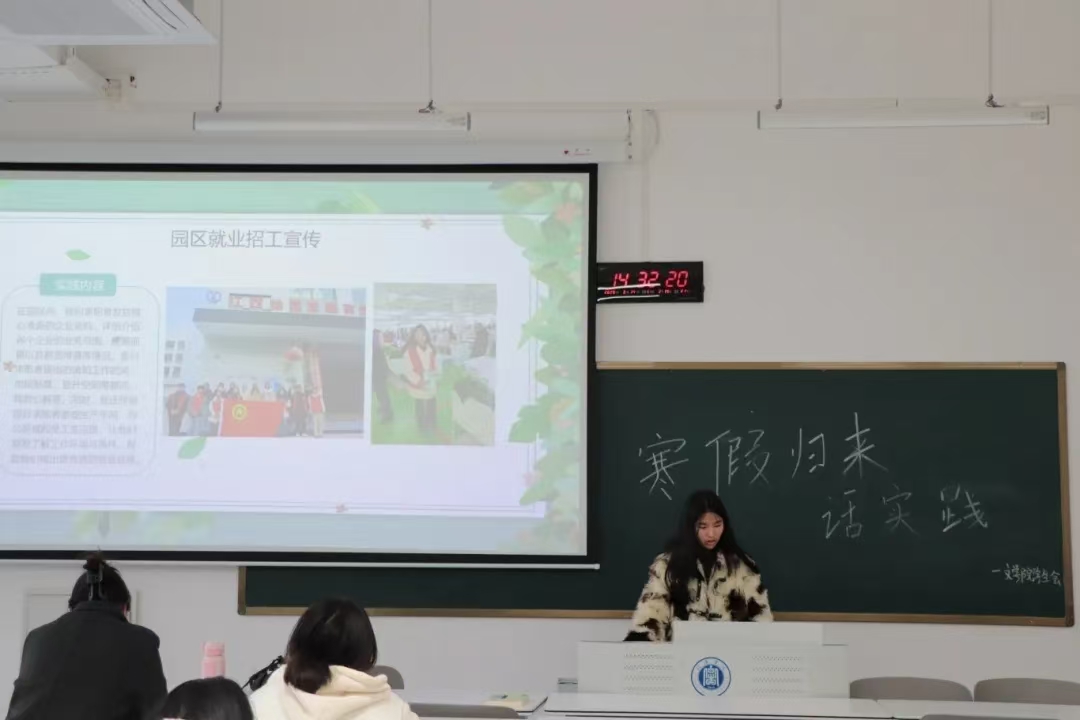 活动伊始,礼仪部干事任玉婷、谢语馨介绍活动规则,参加寒假返家乡社会实践的同学结合自己PPT或演讲稿上台分享自己的经历。