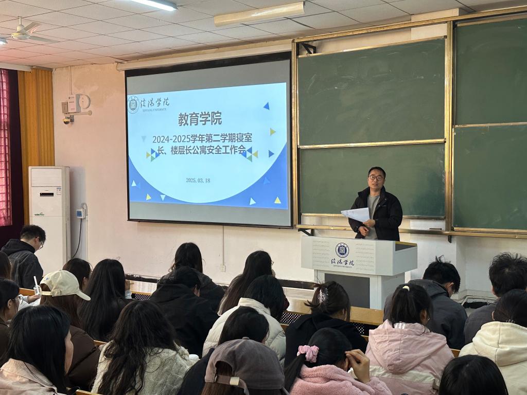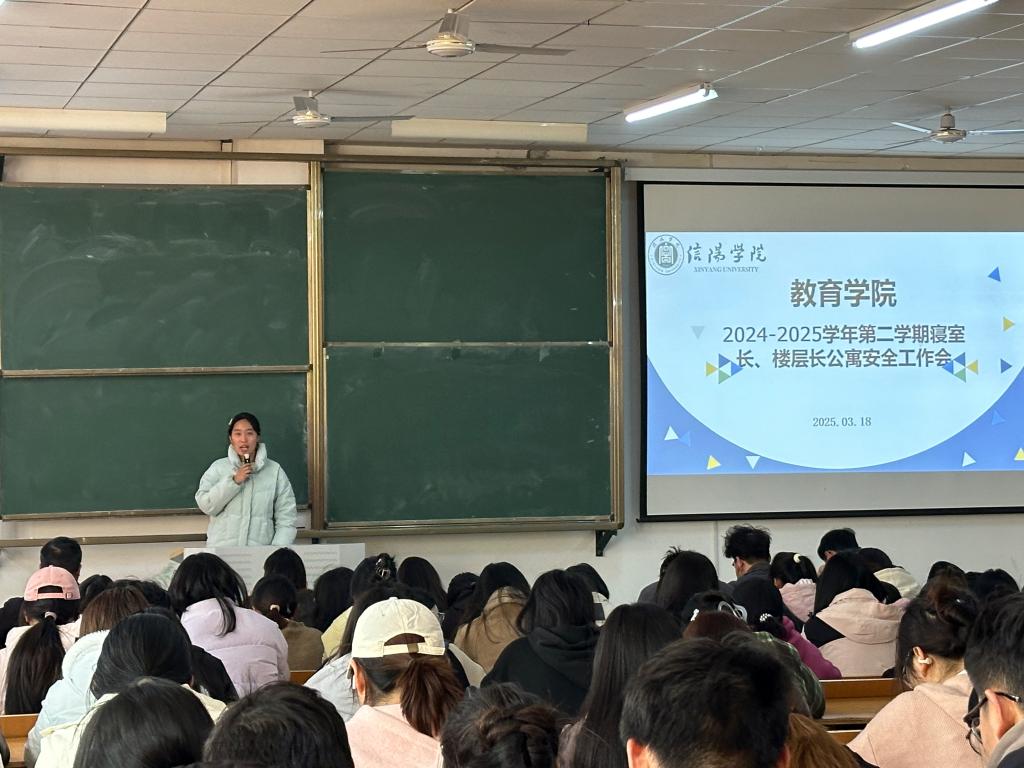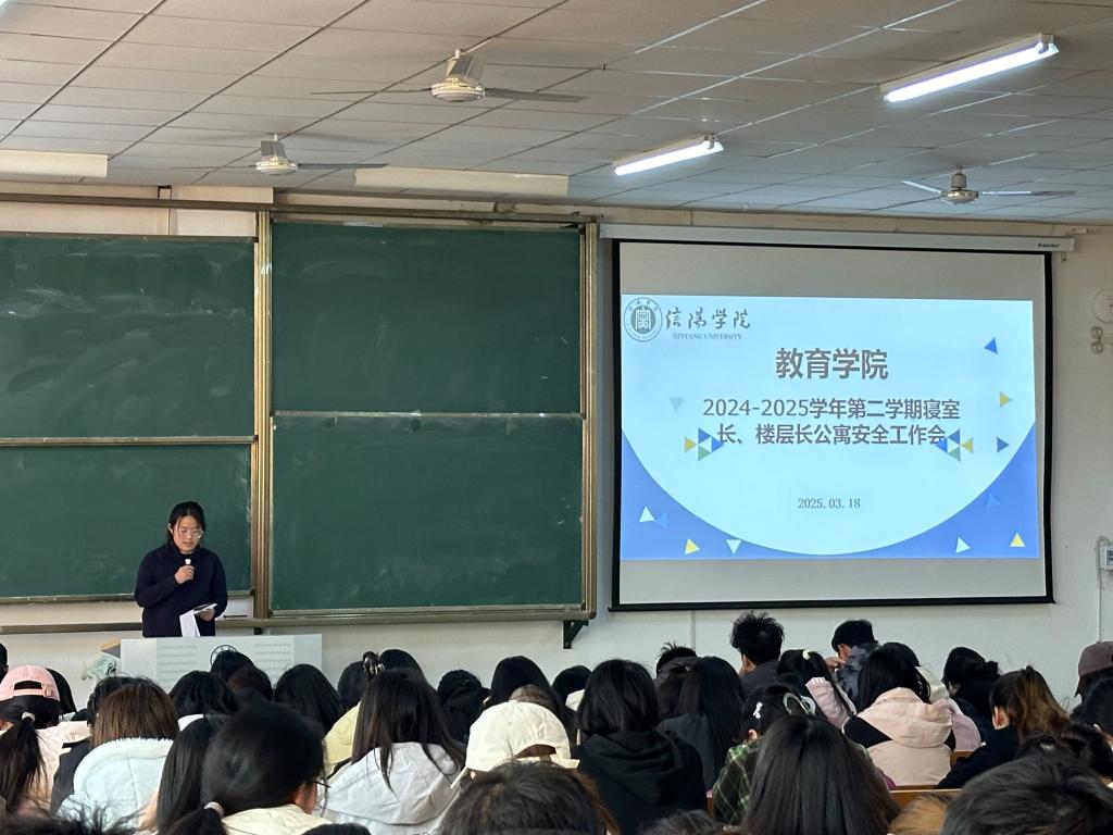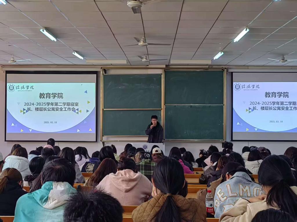 此次会议明确了楼层长、寝室长的工作职责,增强了大家的责任意识,也为新学期宿舍管理工作的顺利开展奠定了基础。教育学院将继续加强宿舍管理,充分发挥学生骨干的作用,共同营造安全、整洁、温馨的宿舍环境,为同学们的学习与生活提供坚实保障。