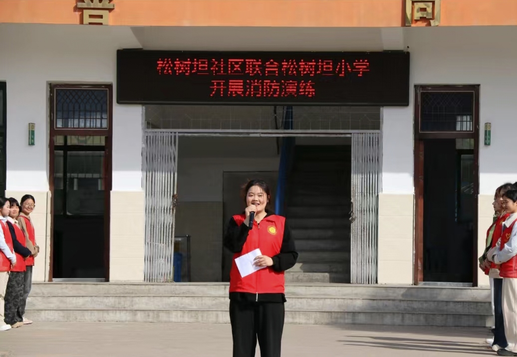 活动伊始,火灾警报响起,学生们迅速做出反应,在文学院老师、志愿者及松树坦小学任课老师们有条不紊地协同疏导、指引下,学生们弯腰、低头、捂鼻,秩序井然地从教室撤离到操场前的空地。在不到一分钟的时间里,学校全体师生成功撤离教学楼,在操场前全数集结完毕。