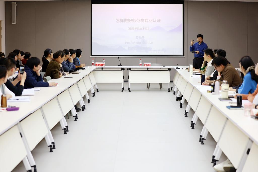 为全面深入推进汉语言文学师范专业认证工作,积极响应省教育厅的政策要求、加快学院转型步伐。3月25日上午,文学院在教一楼406召开专题会议研究推进该项工作,特邀学校教师教学发展中心主任孟宪乐教授,作了题为《怎样做好师范类专业认证》的报告。