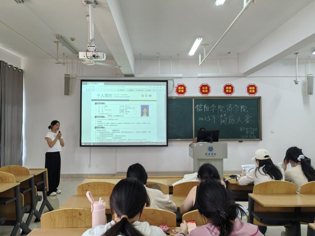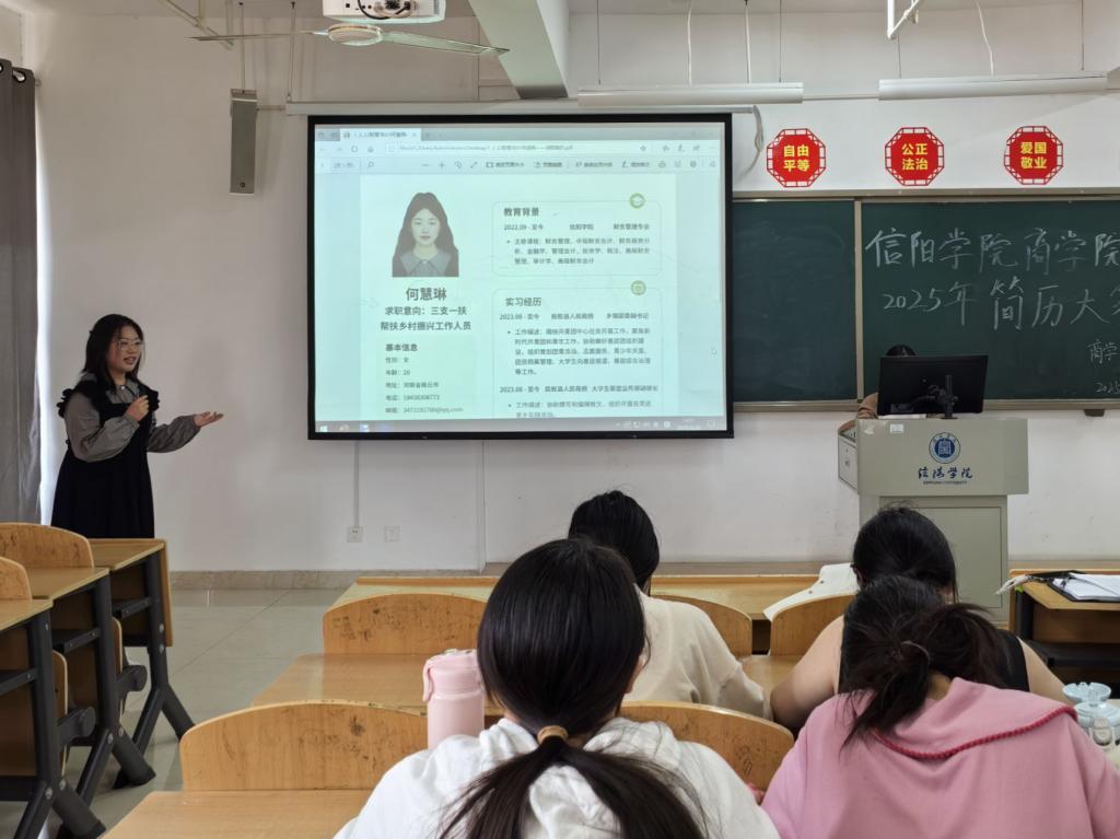 为进一步提升学生简历制作水平,增强其职业素养和求职竞争力,3月26日下午,商学院在综合楼401教室举办2025年简历设计大赛。本次大赛由辅导员房蕾、李欣、涂飞宇老师担任评委,学生王鹏程主持,活动吸引了众多学生积极参与。