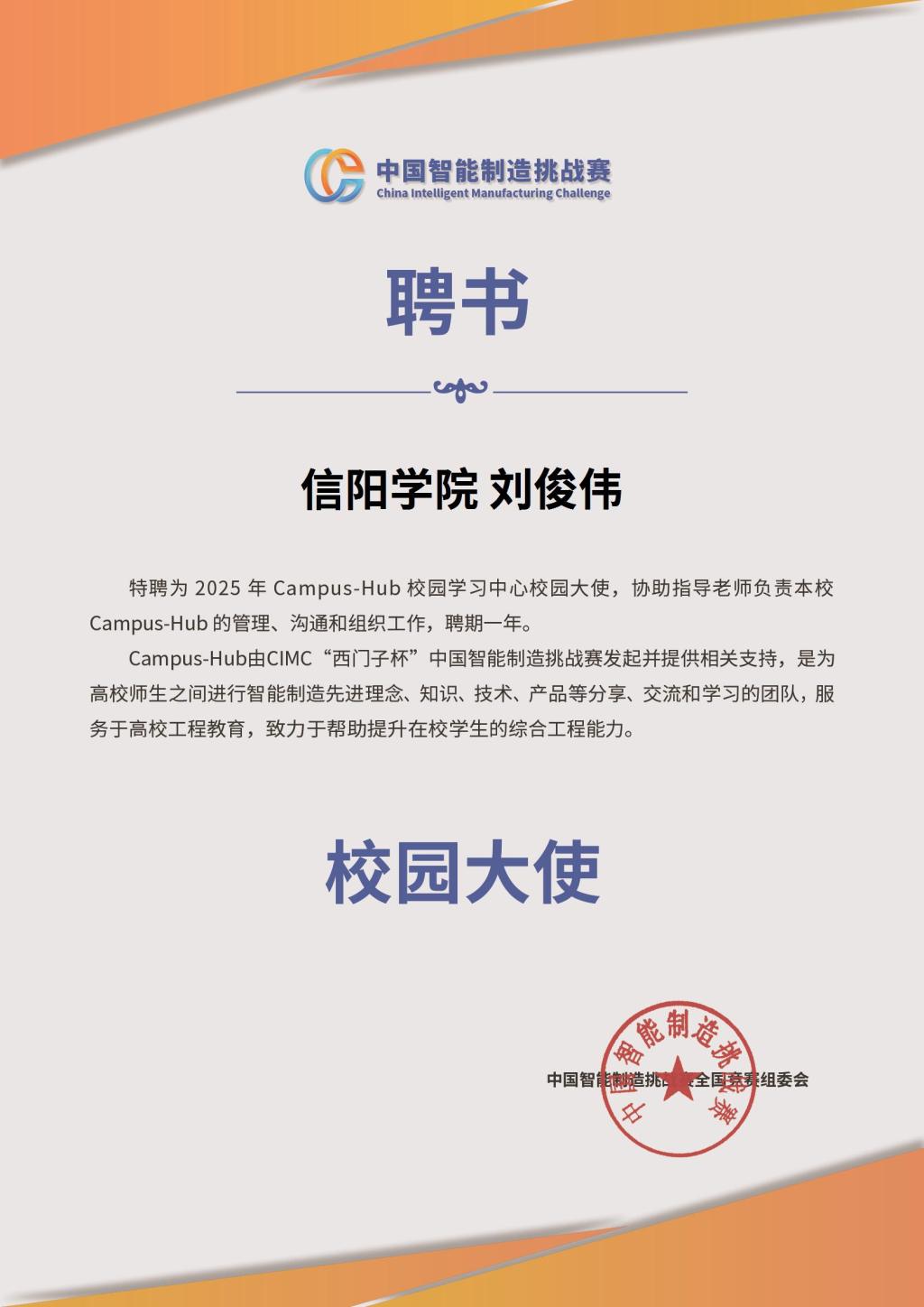 信阳学院Campus-Hub校园学习中心是TMBH新工程师校企联盟、CIMC中国智能制造挑战赛在我校设立的学习中心,校园学习中心是CIMC竞赛组委会支持、教务处部门领导、专业教师指导、学生社团组织运行的学习平台,旨在推动师生进行智能制造领域相关技术的交流、分享活动。