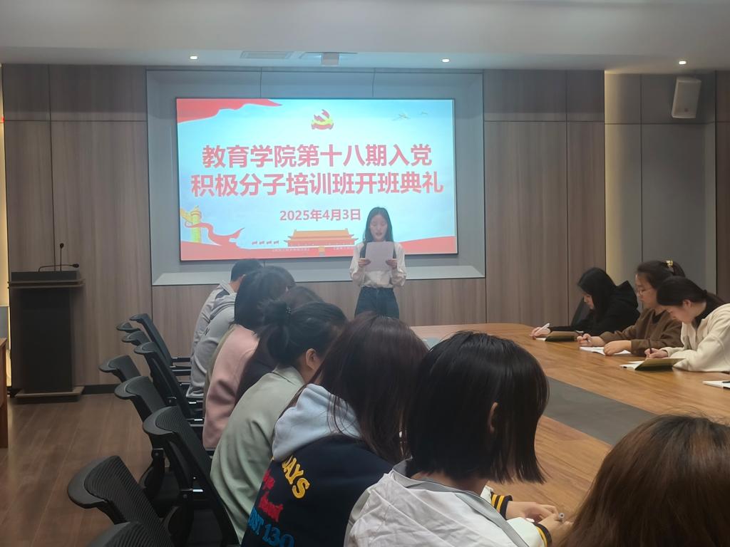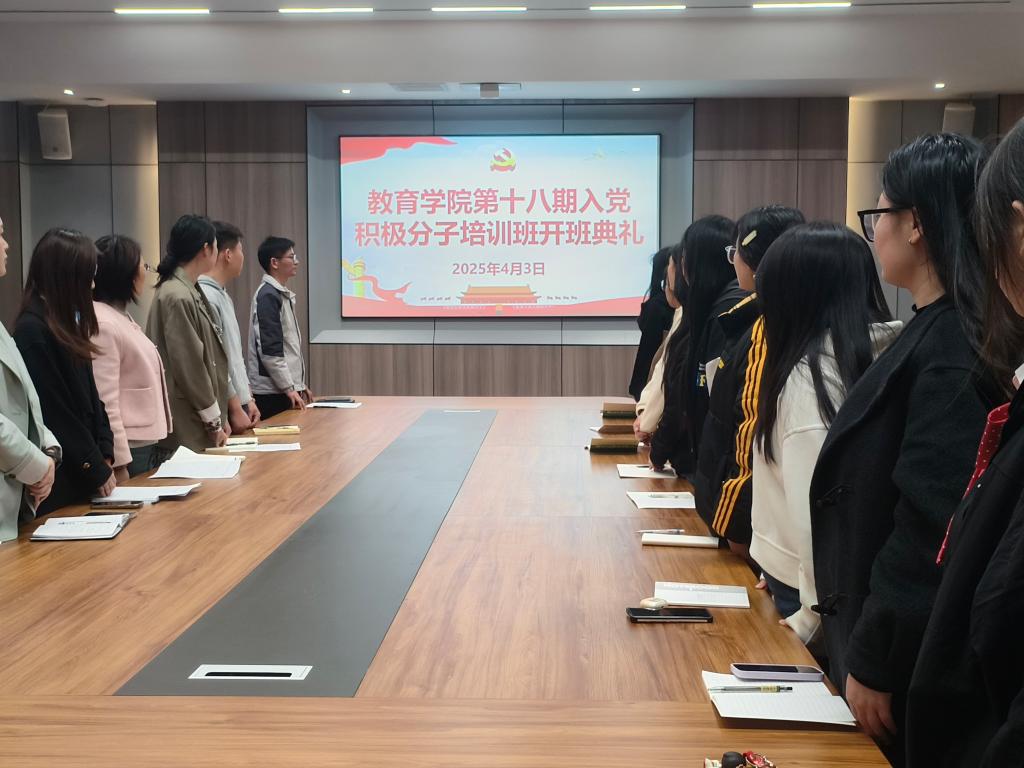 4月3日上午,教育学院2025年上半年入党积极分子培训班在社科楼109会议室正式开班。本次培训班旨在进一步加强对入党积极分子的培养教育,提升入党积极分子的政治素养,确保党员发展质量,为党组织注入“新鲜血液”。学院党总支书记刘颖方,各学生党支部书记,33位入党积极分子学员参加了开班典礼。开班仪式由组织员张文龙主持。
